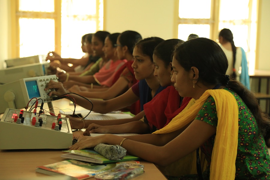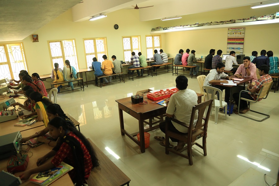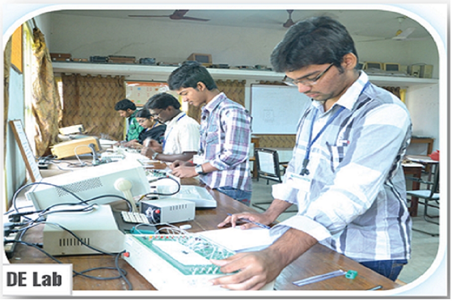 The U.G and P.G courses have separate laboratories and class rooms. The U.G course laboratories namely Electronic Devices and Circuits, Analog Electronics Circuits, Linear ICs , Opamps; Pulse Circuits are conducted in 3 Electronics laboratory rooms. Digital ICs & Microprocessors, Analog & Digital Communications, Antennas; Microwave, Digital Signal Processing, VLSI & IOT, Skill Development laboratories are being conducted in separate spacious laboratory rooms.