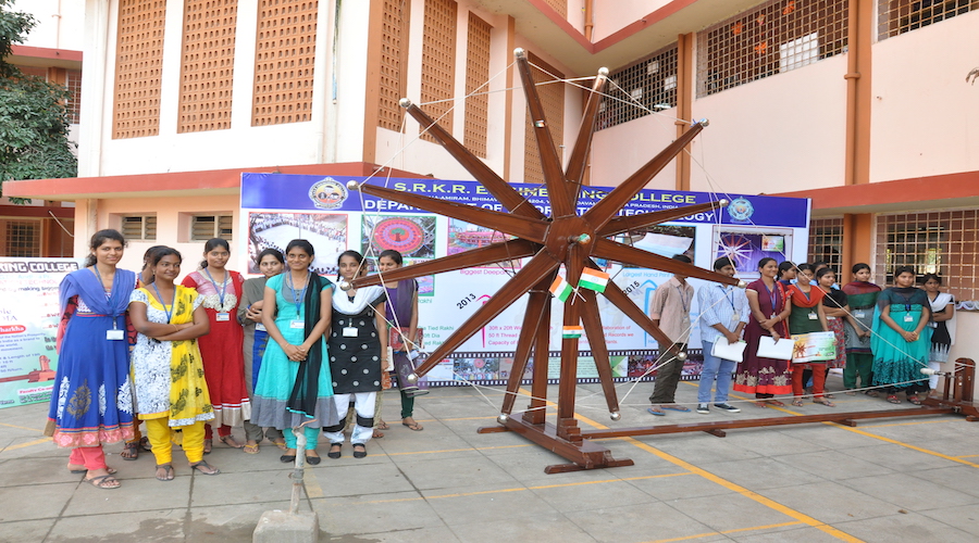 “BIGGEST CHARAKA” Final year students of Information Technology department, SRKR Engineering College On 26TH January 2016. Charka made with total height 12ft&Length of 19ft ,wheel diameter 10 ft, Stand length 14ft,cotton thread 50 ft/turn. |
