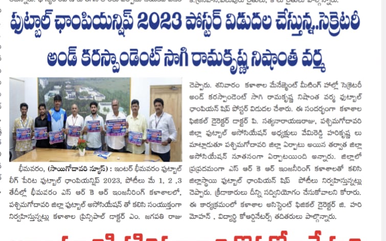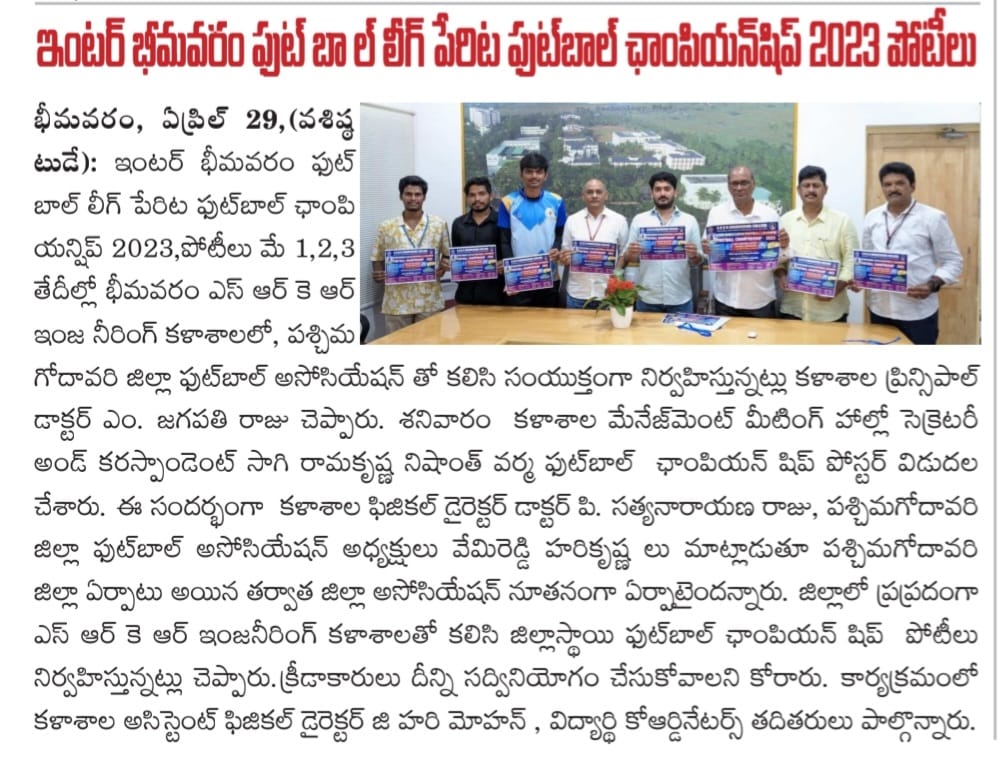 West Godavari Football Association from May 1 st to 3 rd , Principal of SRKR Dr. M. Jagapathi Raju had