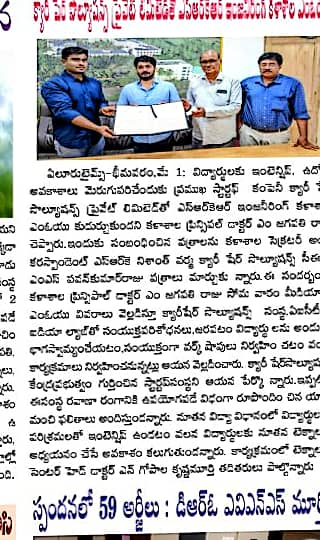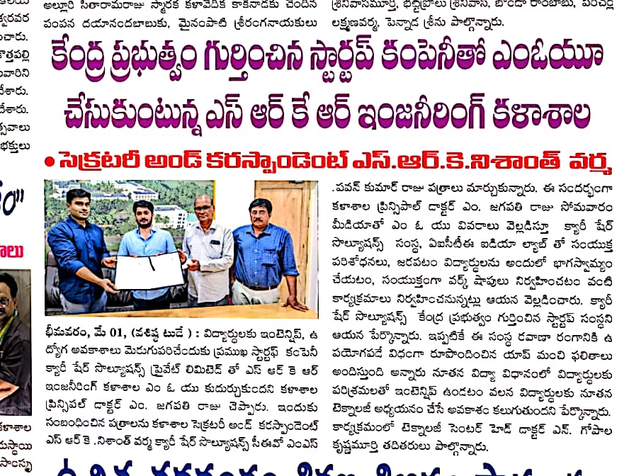 SRKR Engg College had entered into an MOU with the Start-up Company Carry Share Solutions Pvt