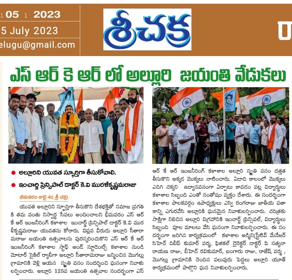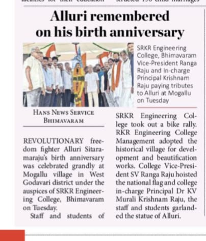 birth place of Seetharamaraju. SRKR had adopted the village for its beautification. SRKR Vice