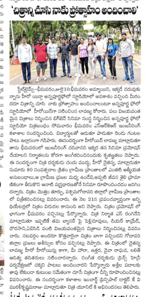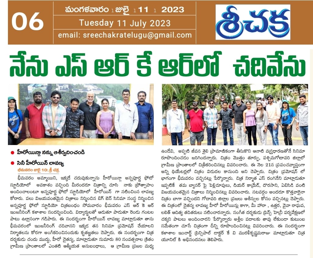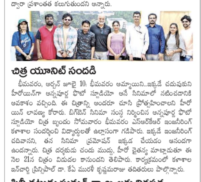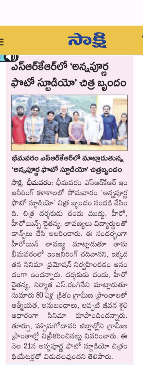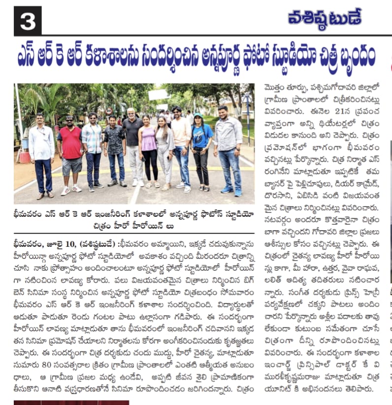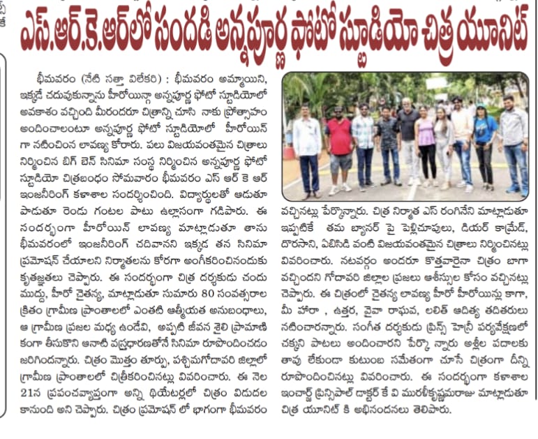 Upcoming Tollywood Movie ‘Annapurna Photo Studio’ cast and crew visited SRKR Engg College for