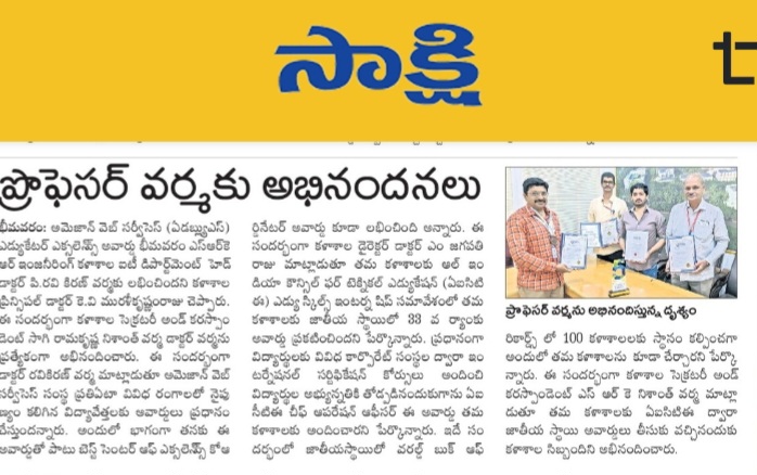 In addition to the AWS award, Dr. Verma also received the Best Center of Excellence Coordinator Award. College Director Dr. M. Jagapathi Raju highlighted that the All India Council for Technical Education (AICTE) recently ranked the college 33rd at the national level during the Edu Skills Internship Conference. This recognition was awarded for the college’s efforts in providing international certification courses through partnerships with various corporate organizations.