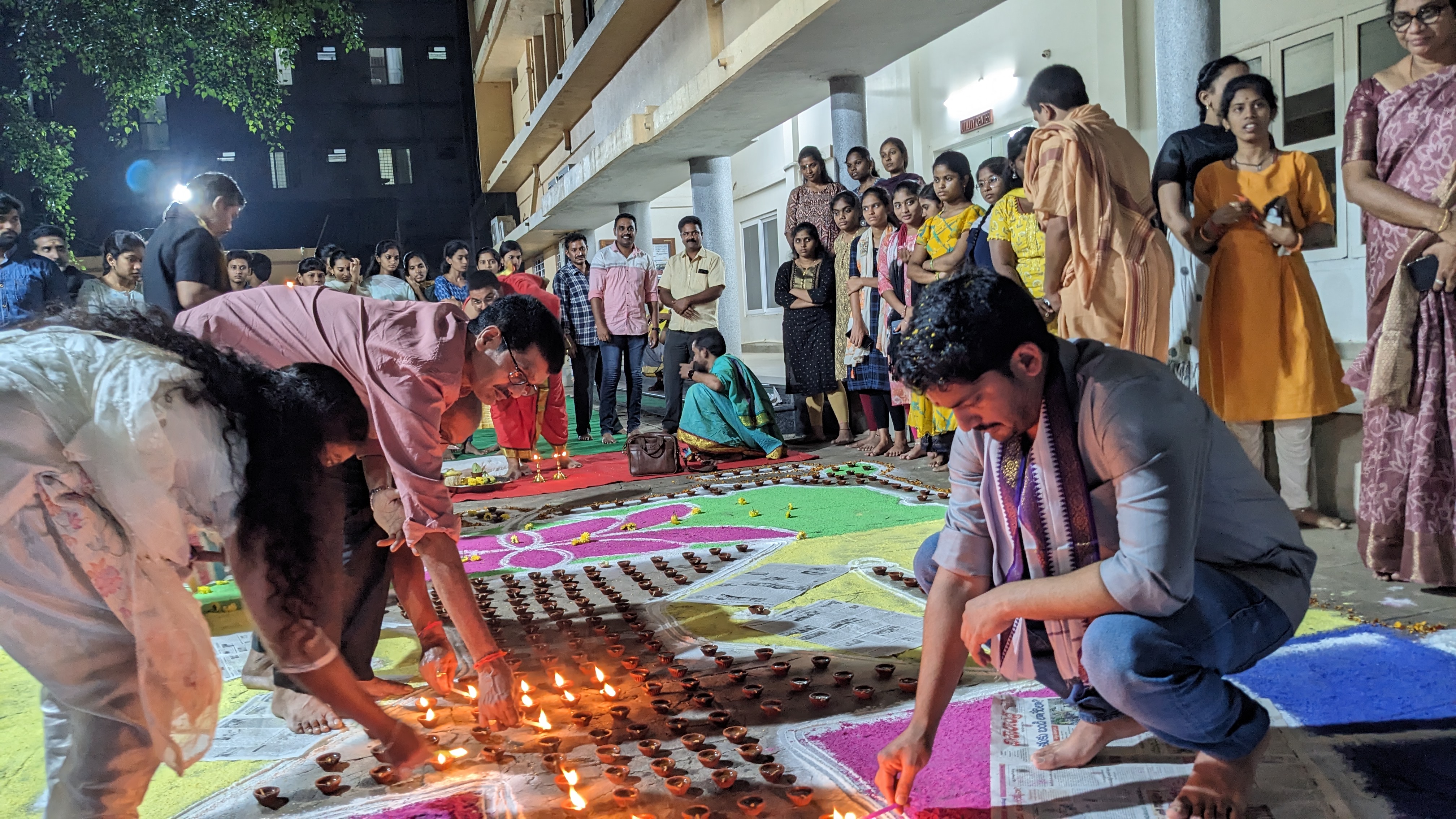 The celebration commenced with the lighting of the Naduma Jyotas as part of the puja rituals, led by College Secretary and Correspondent Sagi Ramakrishna Nishant Verma, along with Principal Dr. KV Muralikrishnam Raju and Archaka Swamulu. The event saw the participation of College Director Dr. M. Jagapathi Raju, along with the teaching and non-teaching staff, and a large number of enthusiastic students.