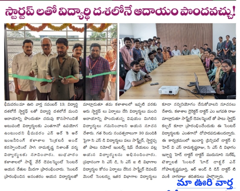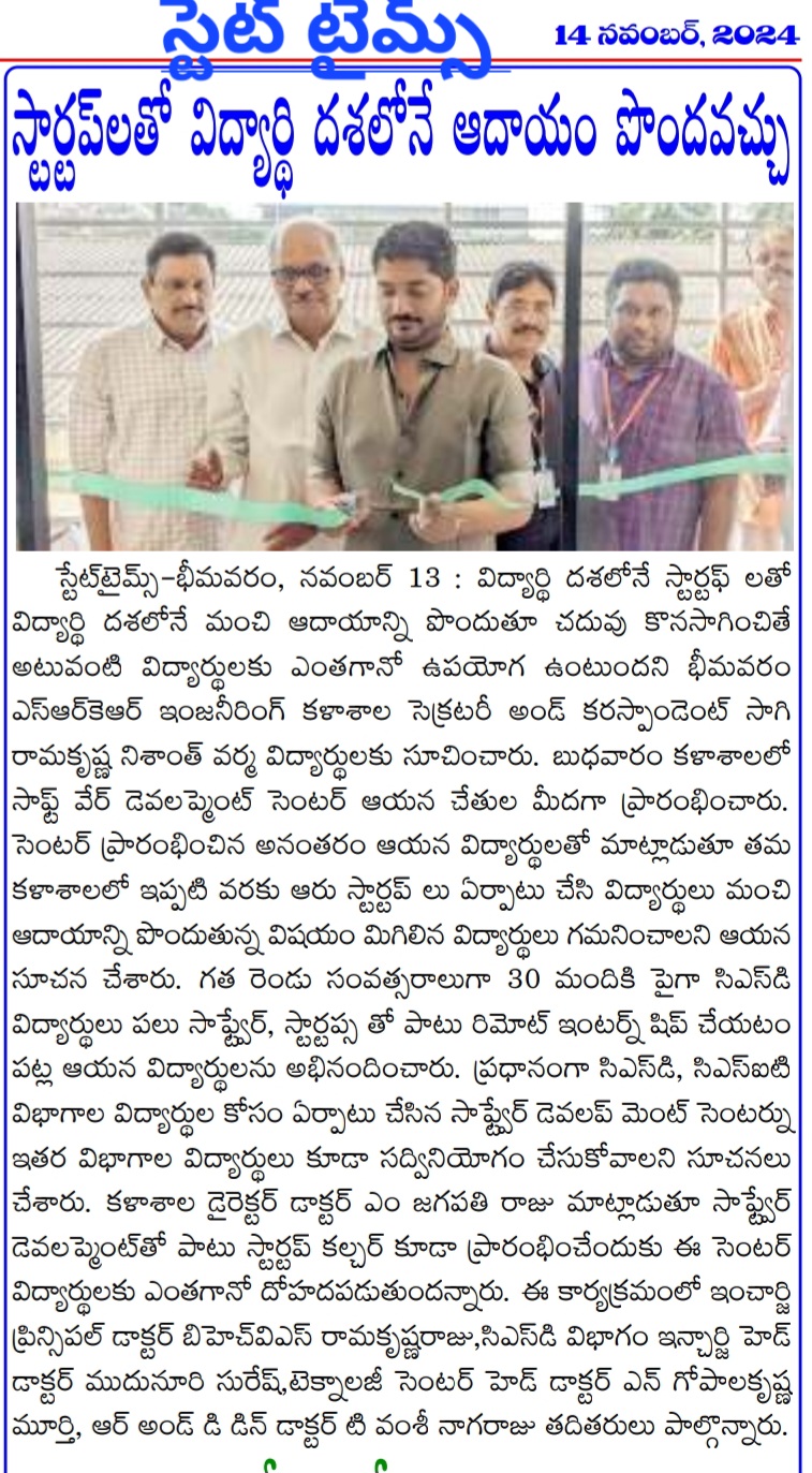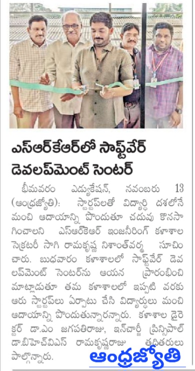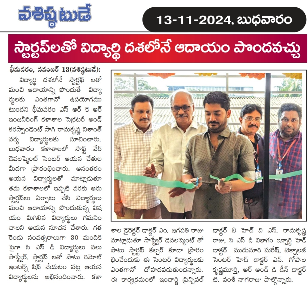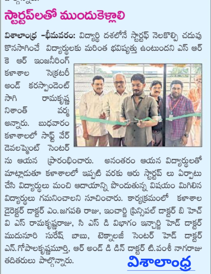 SRKR Engineering College is excited to announce the inauguration of its Software Development Center, aimed at encouraging student startups and fostering innovation. The center was officially opened by College Secretary and Correspondent Mr. Sagi Ramakrishna Nishanth Varma on November 13th.