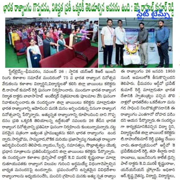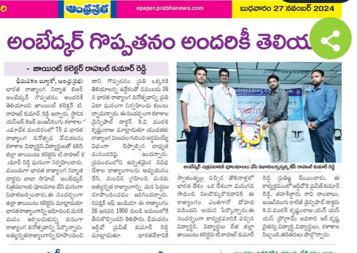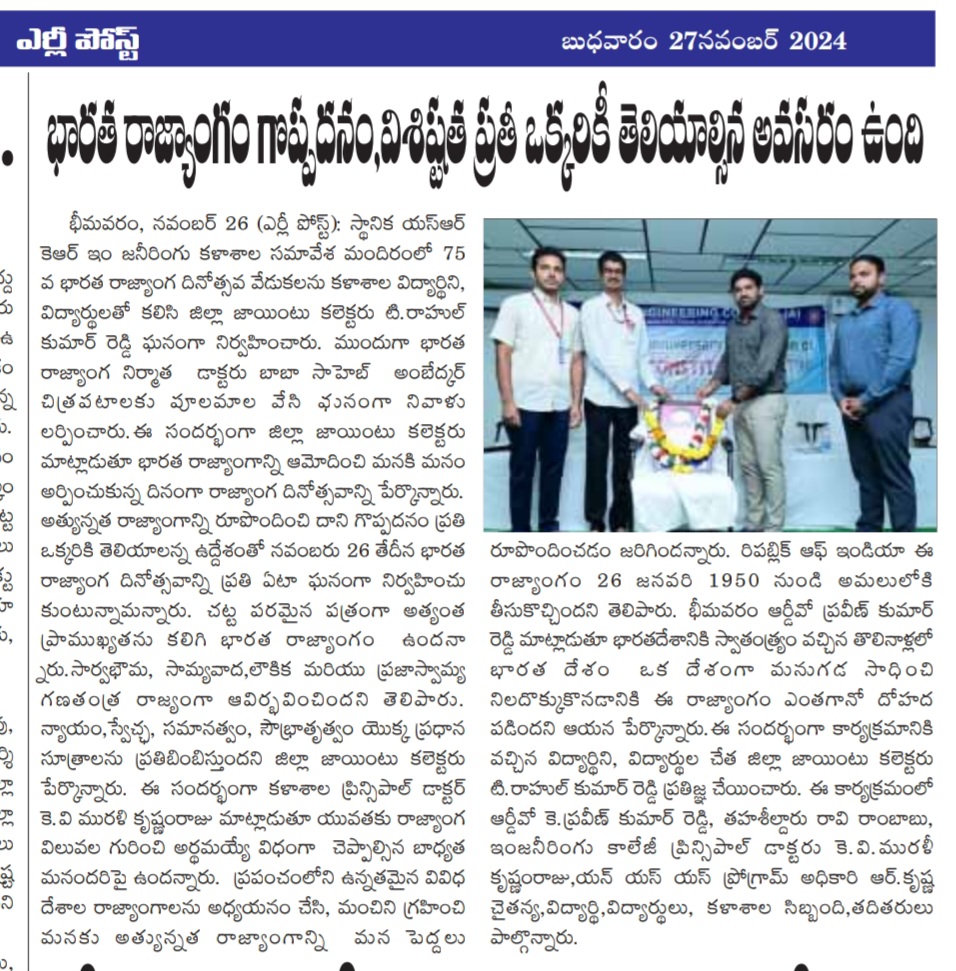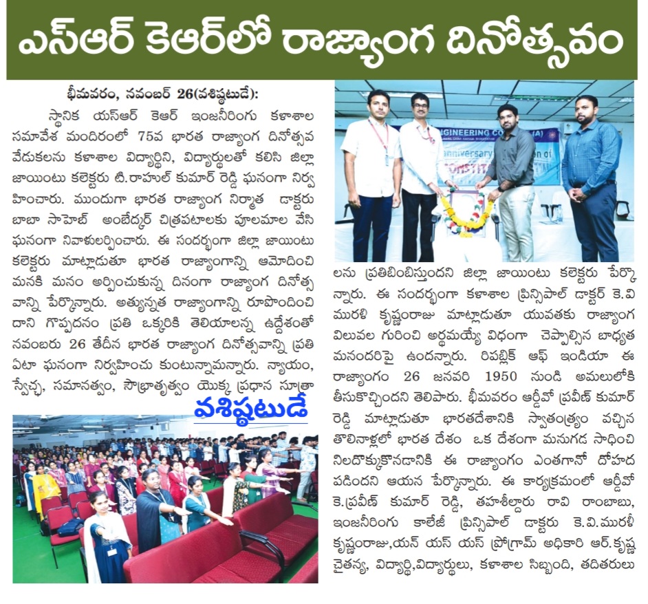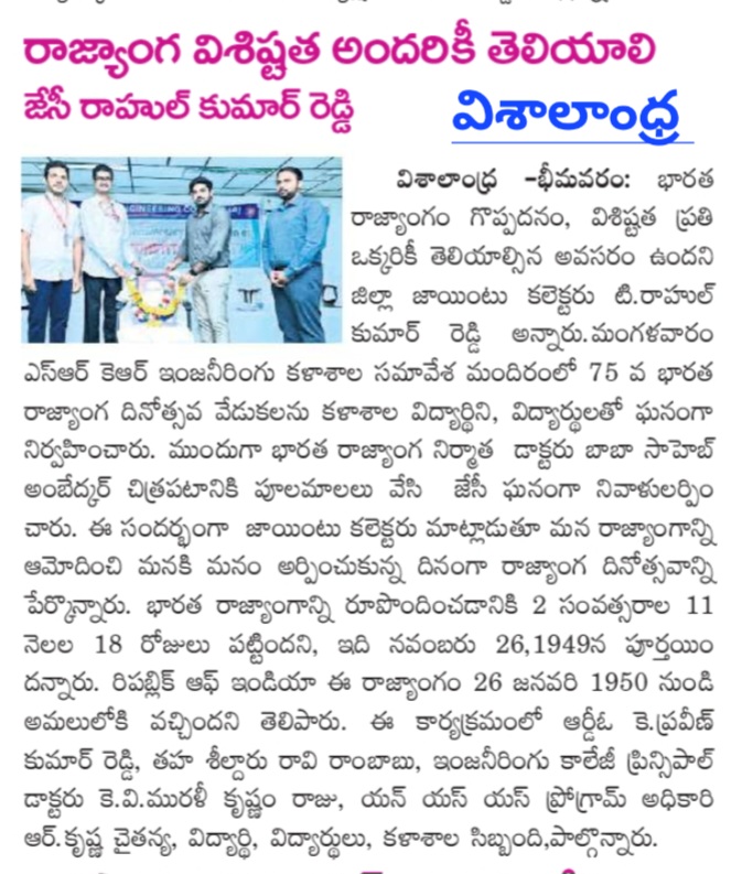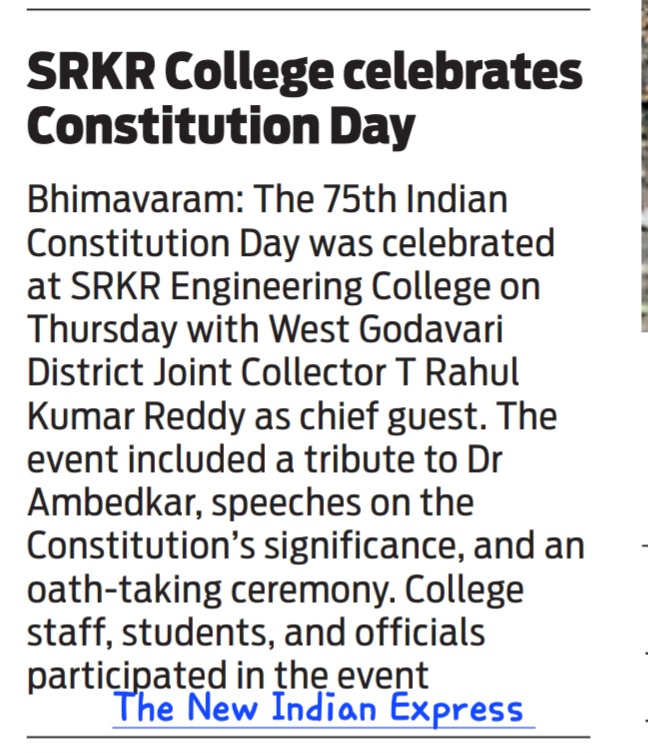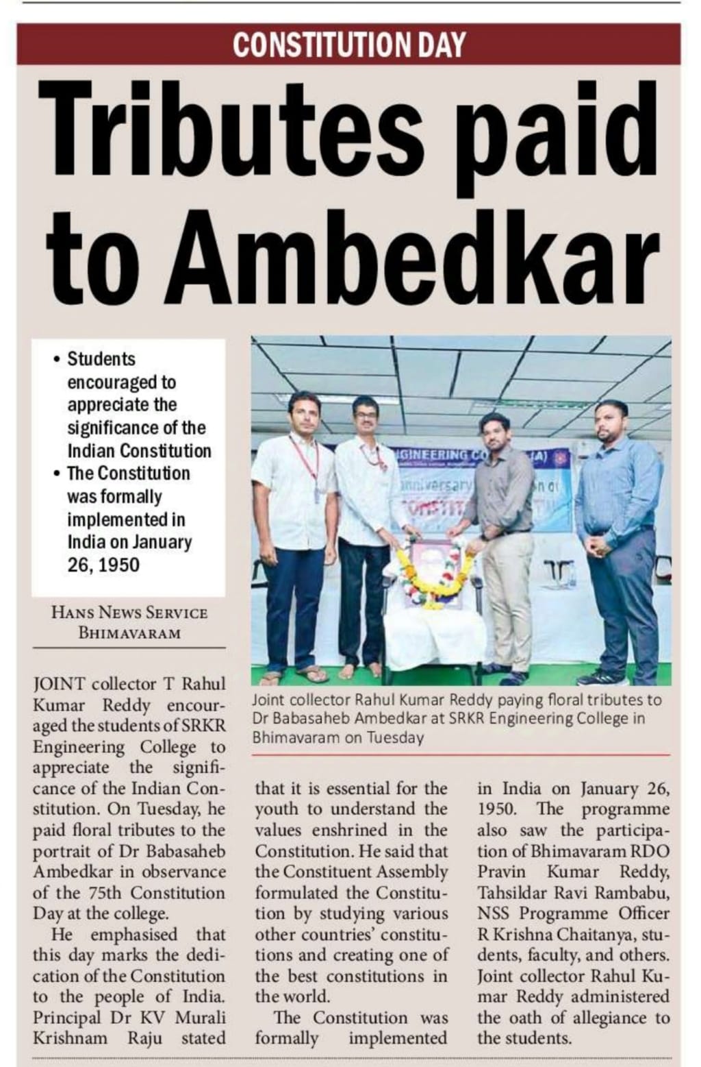 SRKR Engineering College extends its congratulations to all those involved in the Constitution Day celebrations and reaffirms its commitment to educating students about the values of equality, justice, and social harmony.