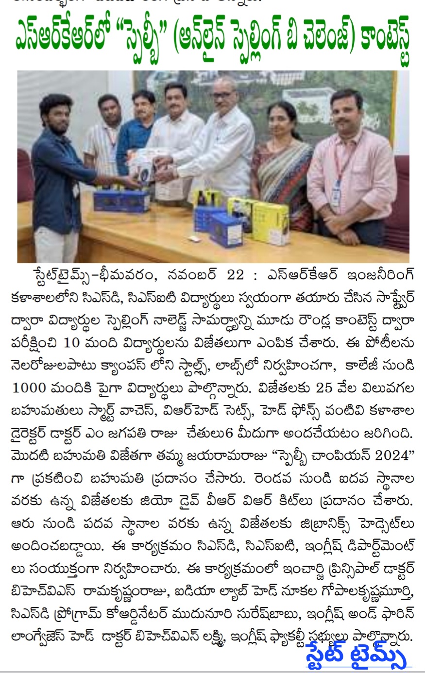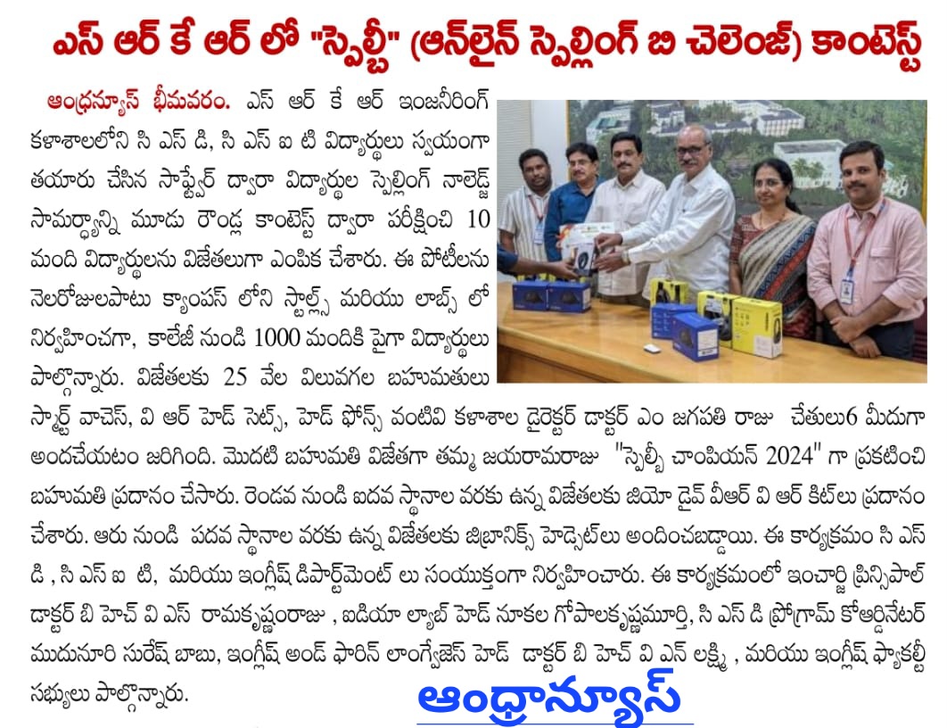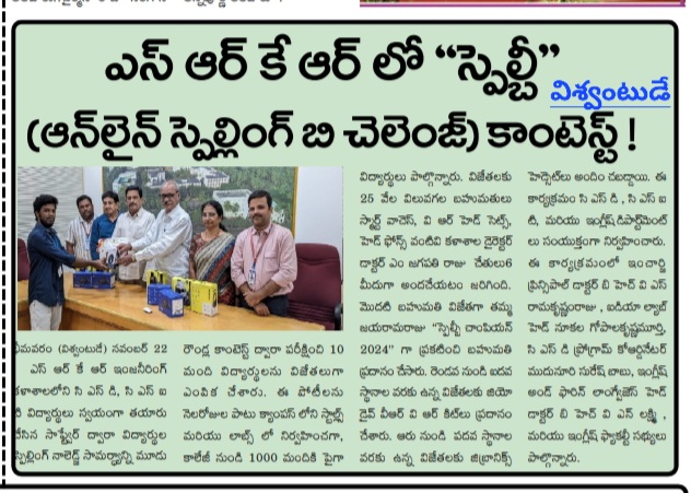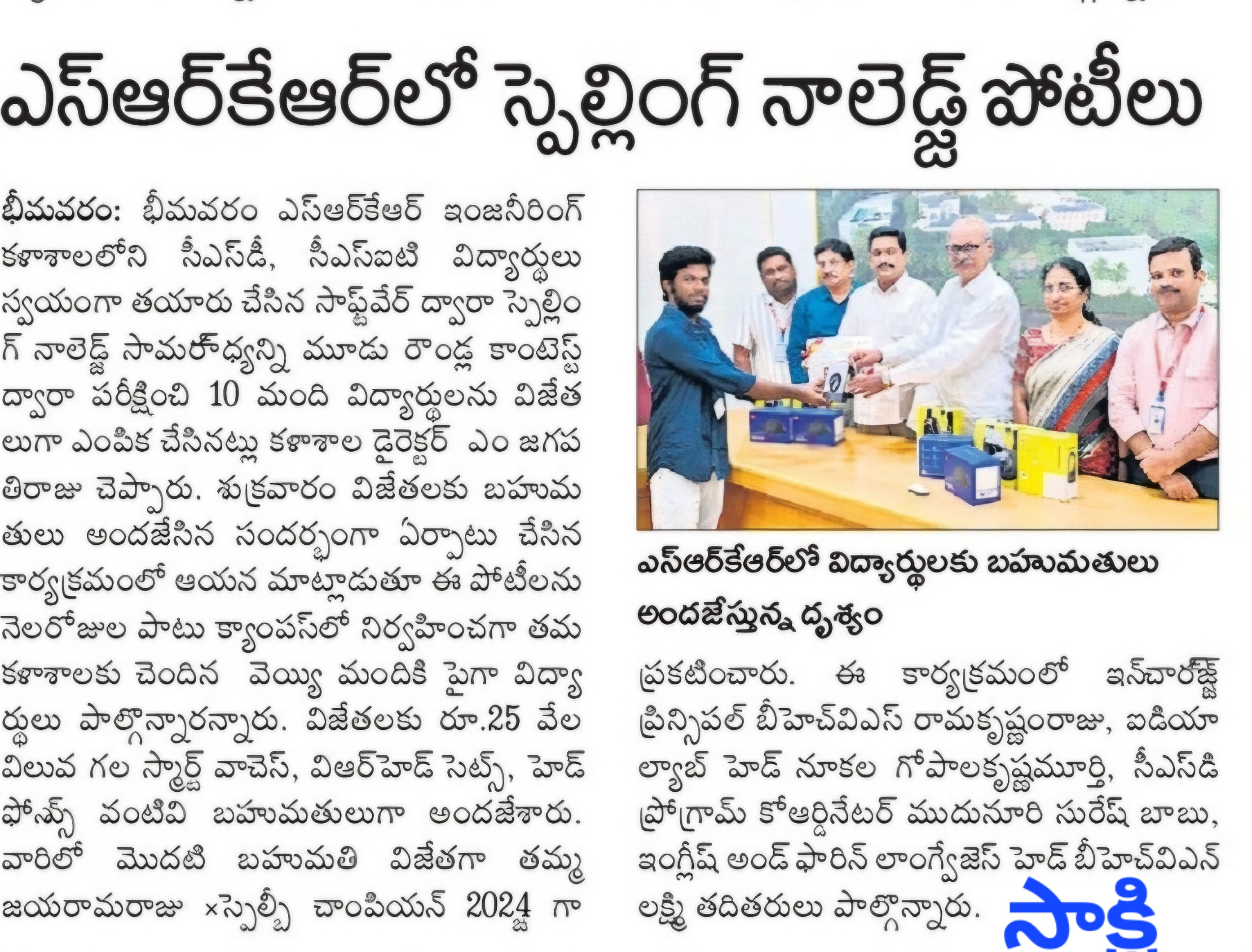 The CSD and CSIT students of SRKR Engineering College showcased the spelling prowess of the student community through a three-round contest developed using custom software. Over 1000 students participated in the competition, which was conducted across various stalls on campus. From this pool of participants, 10 winners were selected.