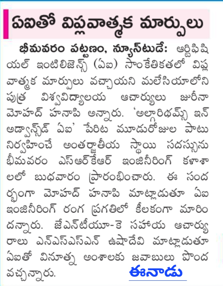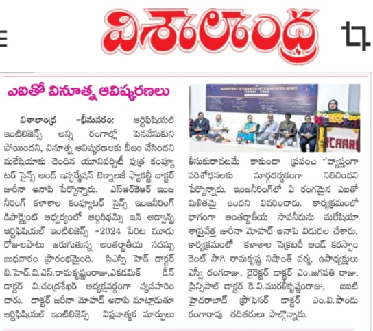 Dr. RNV Jaganmohan, Convener of the International Conference, along with Co-Convenor TVJP Prasad and other faculty members, participated in the event, which saw significant discussions and interactions on cutting-edge topics in AI. The conference proved to be highly beneficial for researchers, teachers, and students alike.