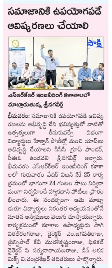 As part of the 'Vedic Vision 2K25' program, a 24-hour non-stop hackathon competition was launched on Thursday at Bhimavaram SRKR Engineering College.