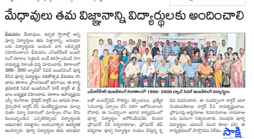 Sagi Ramakrishna Nishant Varma, Secretary and Correspondent of Bhimavaram SRKR Engineering College, suggested that intellectuals and alumni in high positions should contribute to student development by providing them with their knowledge and experience.