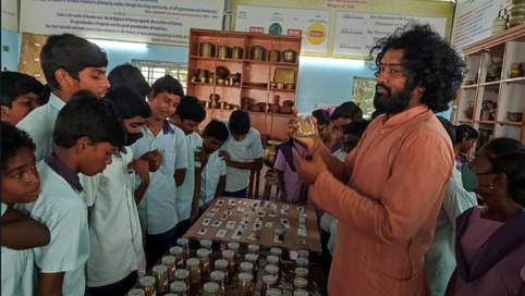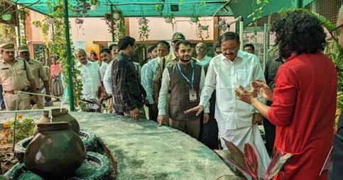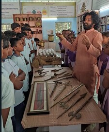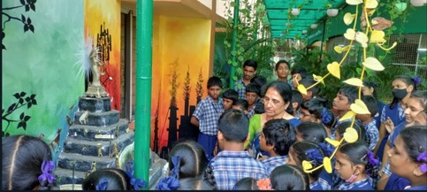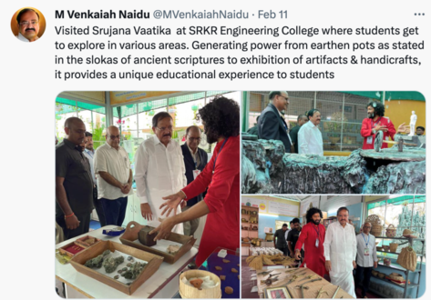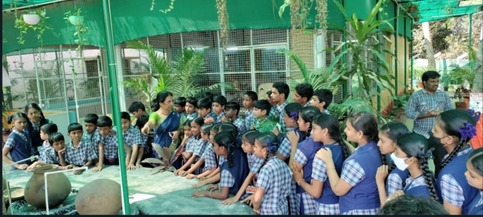 Children from different schools in and around Bhimavaram visited Srujana Vatika in March 2023. Sri E Sitarama Raju, the Coordinator, SrujanaVatika, and Prof. Bh V N Lakshmi, the Head, Dept. of English & Foreign Languages, interacted with them and explained the ancient Indian knowledge showing the potpourri of collections and enunciated the significance, history and cultural aspects of certain relics and various cooking utensils used across the country. They even explained the importance of eco-friendly items in day-to-day life, the exigency of limiting the use of plastic, methods to preserve ancient Indian art and knowledge system, and activities highlighting the importance of socio-ecological well-being of the nation. Children rejoiced each and every minute that they spent at Srujana Vatika