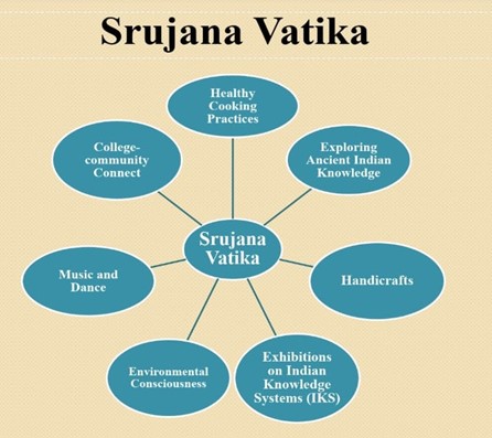 With an aura of ancient Indian wisdom, Srujana Vatika is the cynosure of SRKREC. Carrying forward the essence that Nature is part of our life, it houses various activities that make one to cherish the experience. In consonance with NEP-2020, it promotes community-college connectivity. It actively engages in various activities for spreading the rich heritage of our country and traditional knowledge in the field of Arts and literature, Agriculture, Basic Sciences, Engineering & Technology, Architecture, Management, Economics, etc.