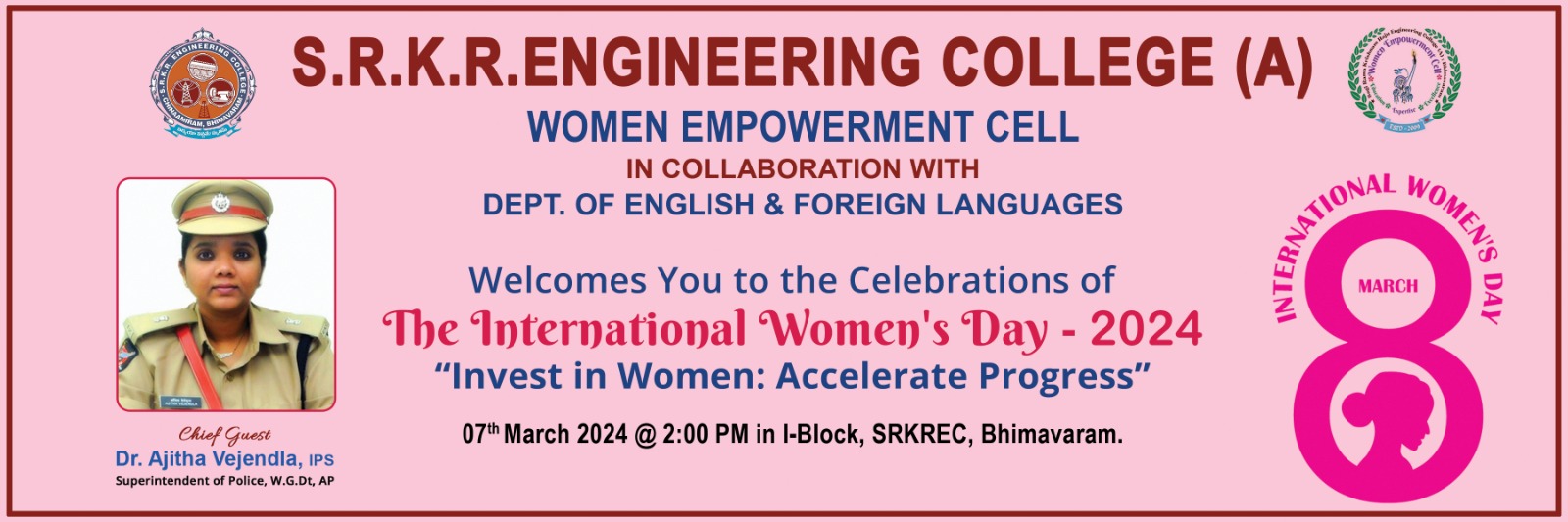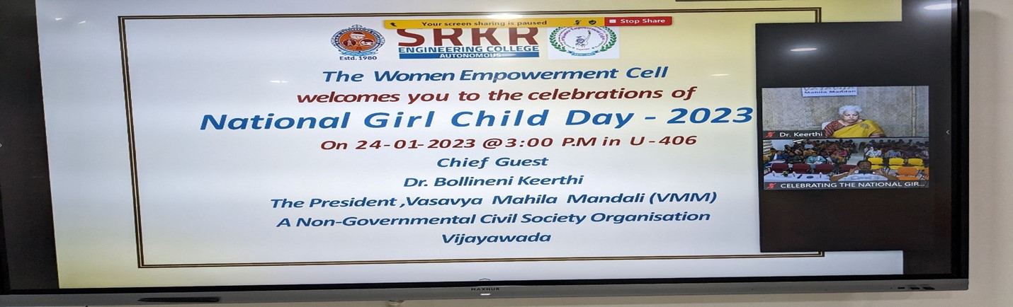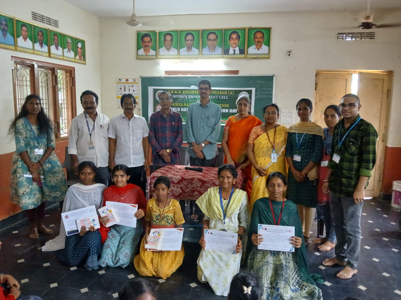 The Women Empowerment Cell of SRKREC is committed towards the promotion and practice of the ideals of gender equity, human dignity and the rights of all human beings. The role and responsibility of WEC is to enhance the awareness of gender sensitization and to create an atmosphere free from any form of ragging, sexual discrimination and sexual harassment, prevention, prohibition and social security, counselling etc. WEC organizes various activities to create awareness on safety and security, self-defence, gender sensitivity and health to ensure a healthy and secure environment to the girl students and the women faculty. Counselling is provided to encourage the students for early reporting of any issues/ complaint/ grievance of anything that comes into the purview of the college.