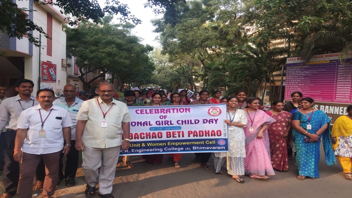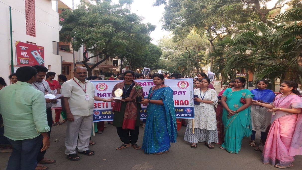 NSS unit in colloboration with womenempowerment cell celebrated National girl child day on 24-01-2020 on the theme of Beti Bachao Beti Padhao.Walkathon was conducted to bring awareness about "Beti Bachao Beti Padhao" among public surrounding the campus.On this occasion women sports persons were felicitated