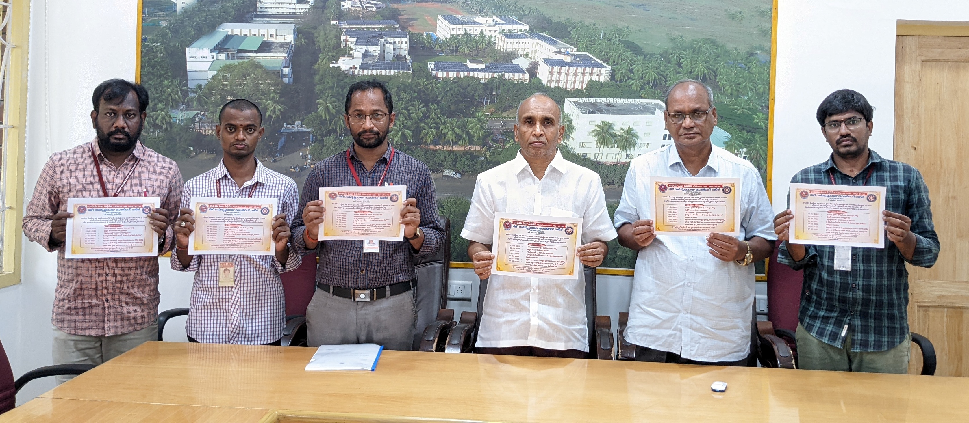NSS camp was being organized at Kallakuru Village by SRKR students from 21-03-22. The poster relating to this was inaugurated at the campus by the Secretary and Correspondent of SRKR Engineering College Sri. S. Vital Rangaraju garu. Speaking on this occasion the Principal of SRKR Engg College Dr. M. Jagapathi Raju garu had said that the NSS unit at SRKR was recognized by the State Govt of AP. NSS Coordinator KNV Satyanarayana had said that this programme was being conducted with the slogan of 'FIT INDIA-HEALTH INDIA'. As a part of this camp various activities are being planned as below: