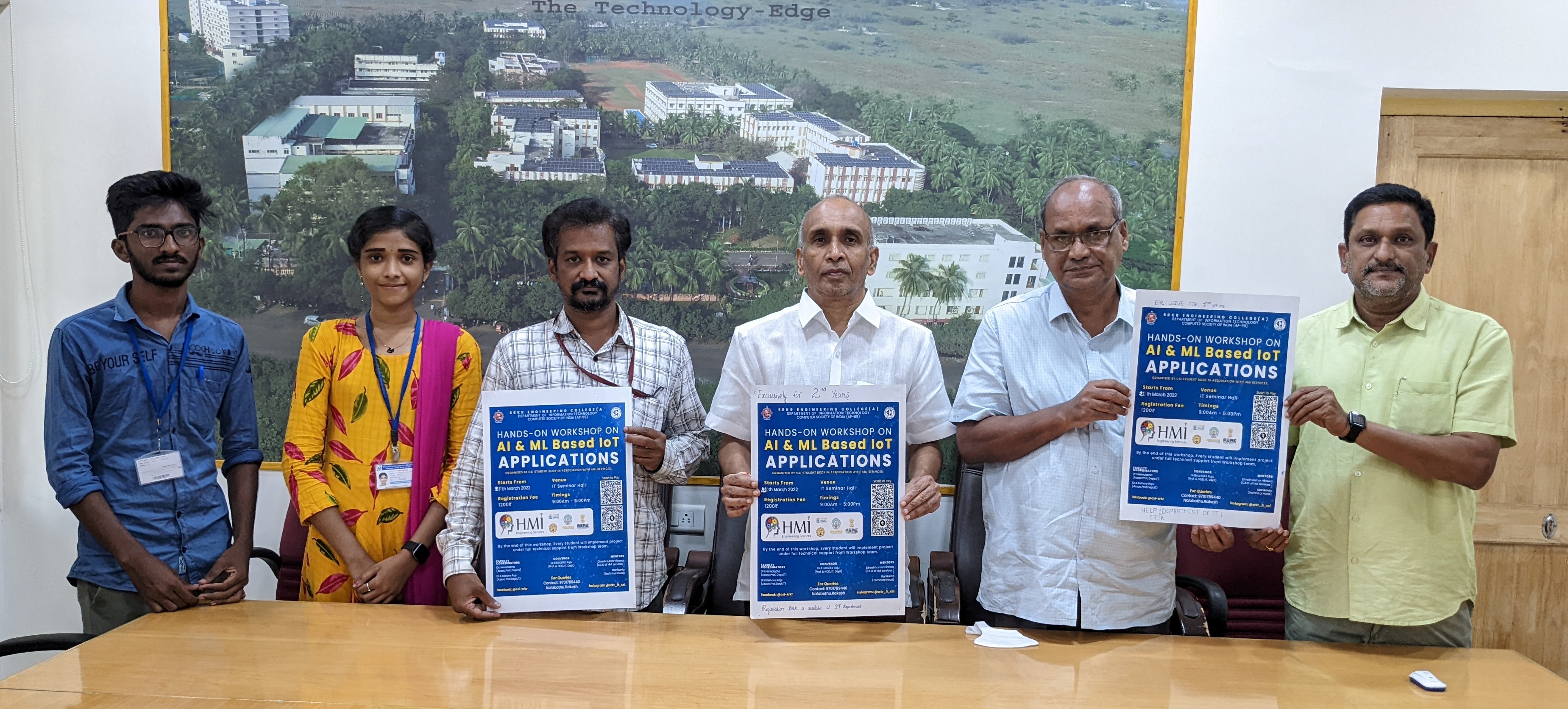 The Dept of Information Technology at SRKR Engg College was conducting a one week Workshop on 'Artificial Intelligence and Machine Learning Based on IOT' from 21st of March, 2022. The poster relating to the same was inaugurated by the Secretary and Correspondent of SRKR Engg College Sri. S. Vital Ranga Raju Garu.Speaking on this occasion the Principal of SRKR Engg College, Dr. M. Jagapathi Raju garu and HOD of IT Dept Dr. BHVS Ramakrishnam Raju garu had said that this programme was basically designed with the objective of disseminating the latest technologies to the students by the industry experts. Dr. K. Hemalatha and Dr. K. Kishore Raju will act as faculty coordinators for this workshop.