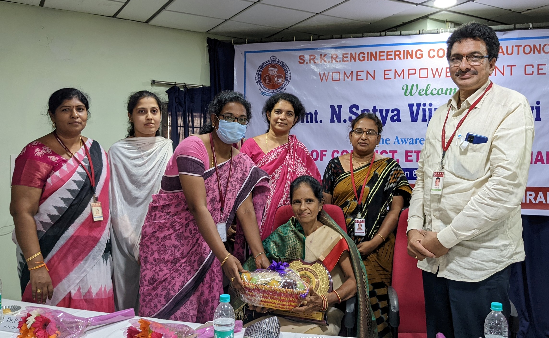 The Women Empowerment Cell at SRKR Engineering College had conducted a seminar on 'Codes of Conduct: Ethics and Indian Culture' on 8 th April, 2022. Prominent Advocate N. Satyavignana Devi has been the chief guest of this seminar. Speaking on this occasion she said that students of this generation should lead a life style which should be the role model for the upcoming generations. She emphasized that students should respect the Indian traditions and culture which are very prominent from the early ages and they should not get distracted towards the foreign culture which will create a negative impact. She said that students should control their emotions and committing suicides in the heat of the moment should be avoided. Incharge Principal of the College Dr. Brahma Raju had said that it is the moral obligation of the student community to protect the rich traditions and heritage of the India for the upcoming generations. Mrs. Devi was felicitated by the college authorities on this occasion. Women Empowerment Cell Coordinator Dr. Bhuvaneshwari has presided over this event along with Dr. P. Bhavani, the Head of the Chemistry Dept.