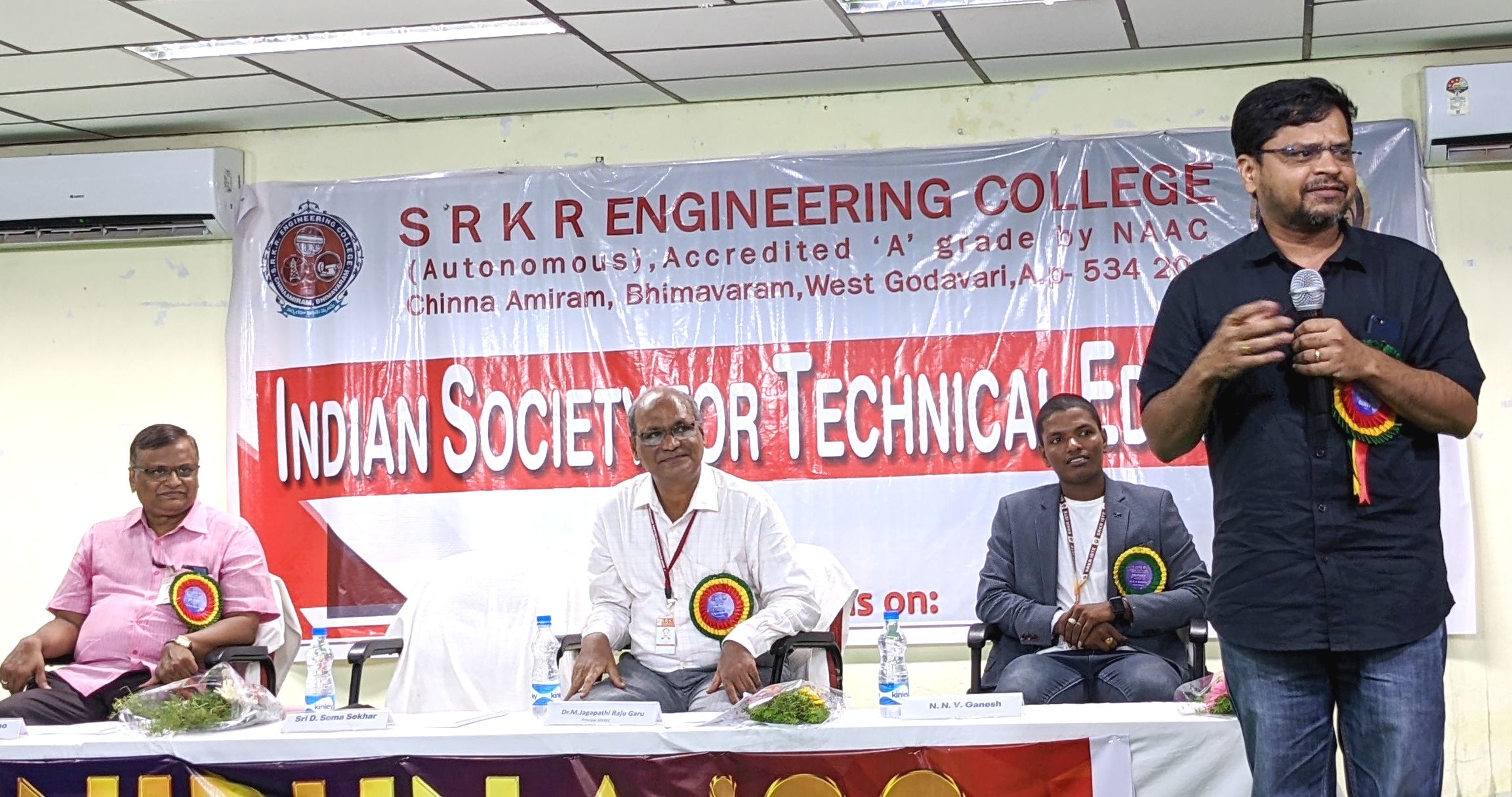 NIPUNA a two day event on recent changes in the industry by ISTE Student Chapter is being inaugurated on 22nd April, 2022 at SRKR Engg College by D. Somsekhar, Principal ML Scientist at Wadhwani Institute of AI, Bangalore. Speaking on this occasion he said that Engineering students should have grip on the group subjects in order to have a competitive edge in the today’s society. He emphasized that students should have command over the language and they should participate in various National and International events in order to have a bright future. Principal of SRKR Dr. M. Jagapathi Raju had said that it was really a matter of great pride and inspiration that the prominent alumni of the college are rendering their services for the growth of the institution. ISTE Faculty advisor Prof. P. Subbarao had presided over the meeting. ISTE Student Chapter Chairperson SSV Giridhar and Secretary Harshavardhan took care of the various arrangements of this event. The management had felicitated Mr. D. Somsekhar in a grand manner.