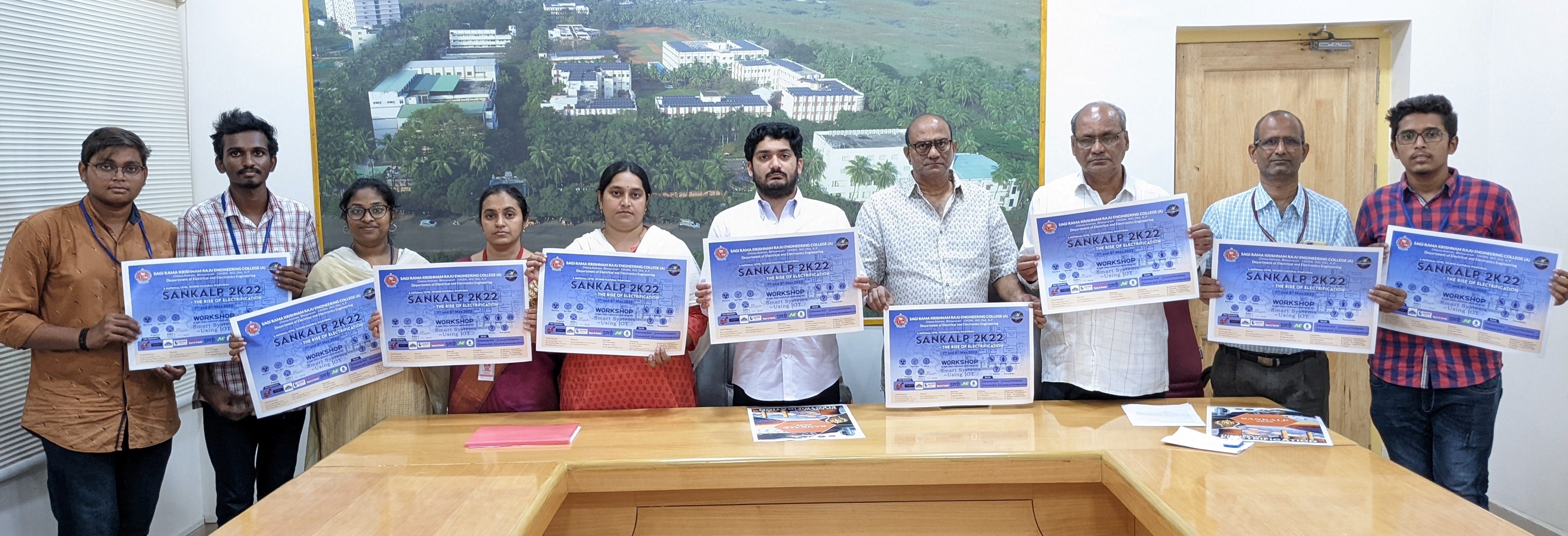 EEE Dept of SRKR was going to organize SANKALP 2K22 a National Level Student Symposium on 7th and 8th of May, 2022 Principal of SRKR Dr. M. Jagapathi Raju had said. The poster of the same was being inaugurated by CEO of SRKR Sri. SRK Nishanth Varma. Program convener and EEE HOD Dr. Varma had said that Students would be given training on various technical issues and various competitions would be conducted on these two days. Secretary and Correspondent of SRKR Sri. SV Ranga Raju had urged the students to make use of this symposium as a way for their bright future. Prof K. Swetha and I. Swetha Mounica will act as faculty coordinators and Mr. A. Harsha, Mr. P. Vamsi, Mr. A. Aditya and Ms. P. Jhansi will act as student coordinators for this symposium.
