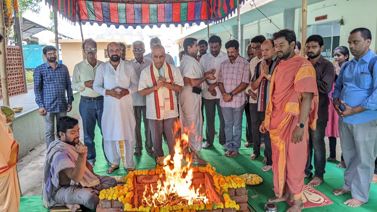 Lakshmi Ganapati Homam was being performed at the college premises on the occasion of 'Vinayaka Chavithi Celebrations'. SRKR Vice President Sri. SV Ranga Raju and Principal of SRKR Dr. M. Jagapathi Raju along with the large number of staff and students took part in this event. Speaking on this occasion Vice-President and Principal had said that the college will raise to new heights with the divine blessings of the almighty and co-operation of the staff and splendid performance by the students.