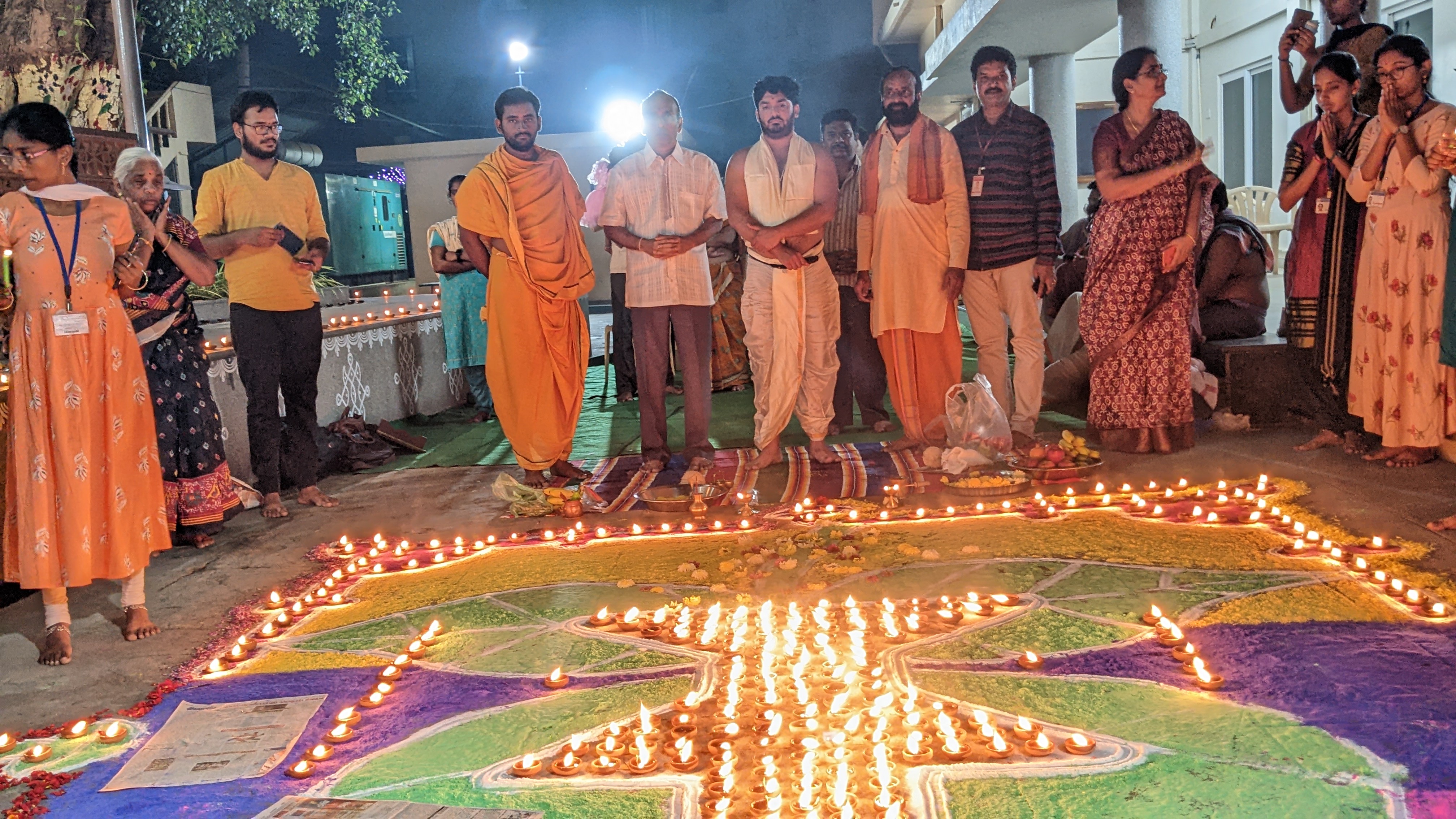 On the eve of 'Karthika Somavaram' the management, staff and students of SRKR Engg College had conducted 'Karthika Deeparadhana' in the college premises in a devotional manner. Secretary and Correspondent of SRKR Engg College, Sri. SRK Nishanth Varma, Vice-President Sri. SV Ranga Raju and Principal Dr. M. Jagapathi Raju along with staff and students had participated in this event in large numbers. Speaking on this occasion Sri. Nishanth Varma had said that it is the tradition at SRKR to celebrate this event from the last 16 years. He wished the staff and students that their lives should be bright and success should fulfill their lives.