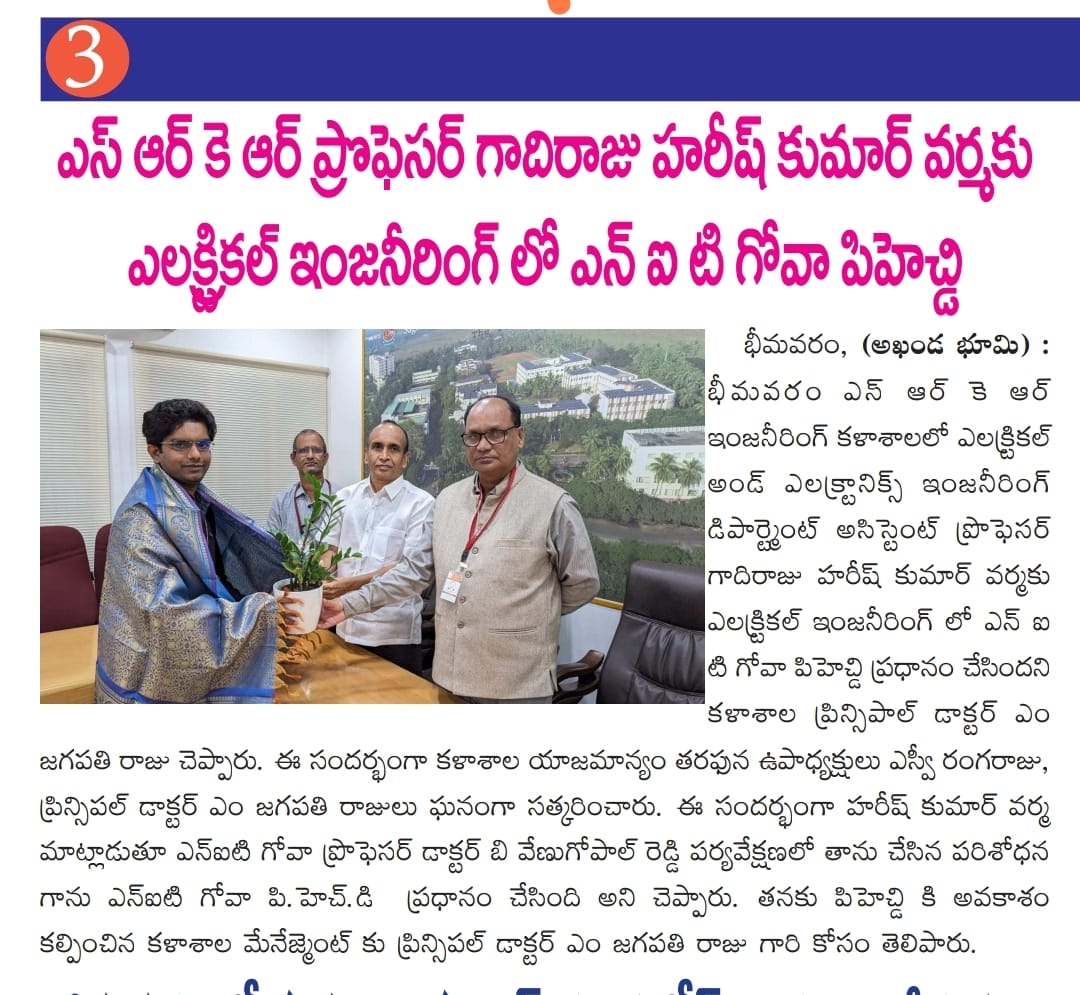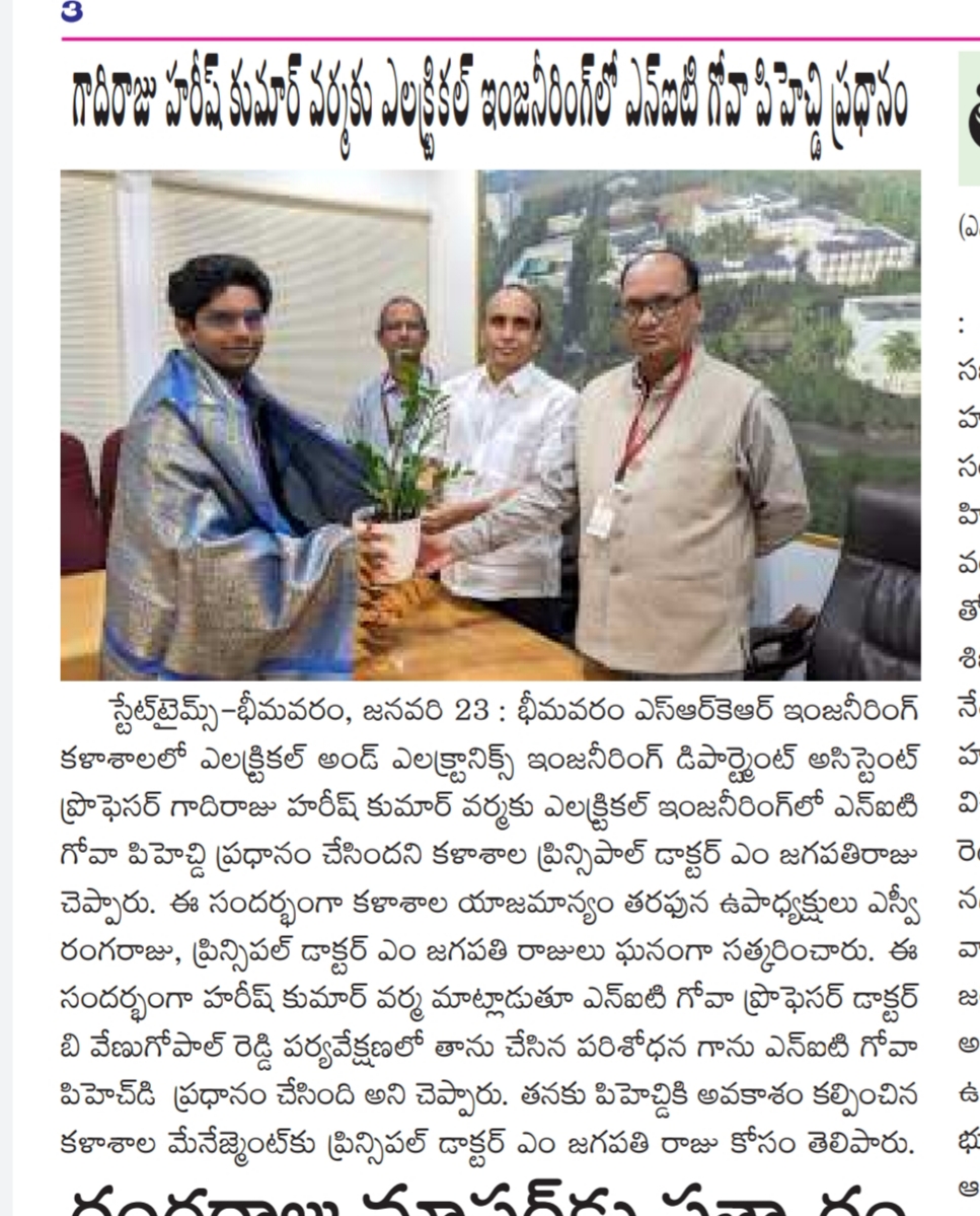 Assistant Professor in the Dept of EEE, Mr. Gadiraju Harish Varma had received his Ph. D from NIT