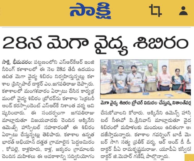A mega health camp was being organised by the SRKR Engg College on 28 th January Morning in the