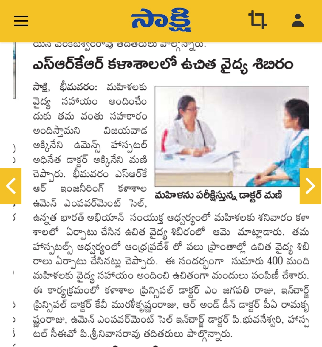 campus with the collaboration of Vijayawada based Akkineni Women’s Hospital. The brochure