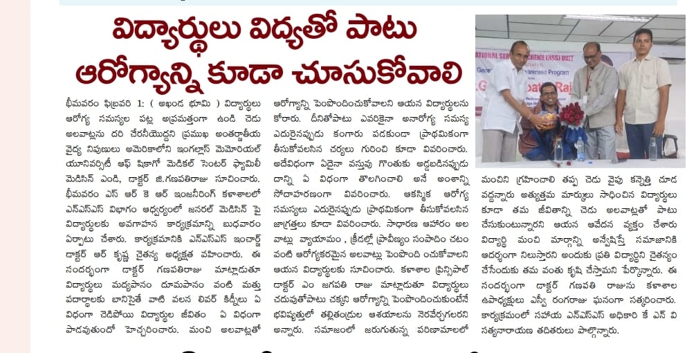 body parts gets affected and the lives will be ruined. Principal of SRKR, Dr. M. Jagapathi Raju had said