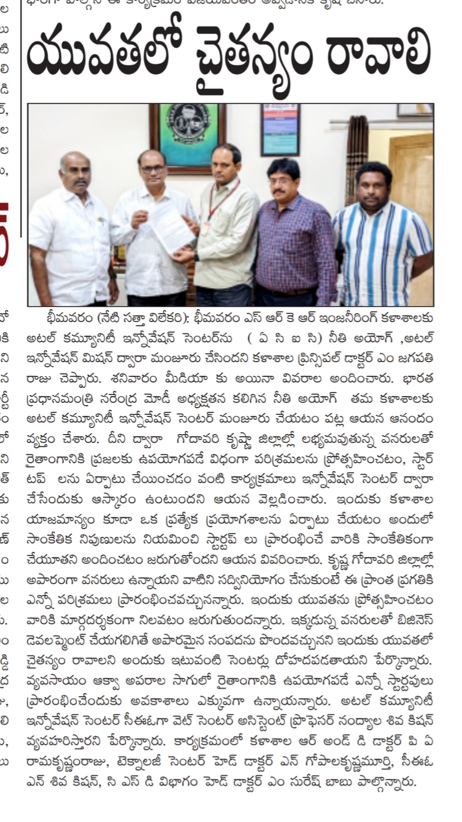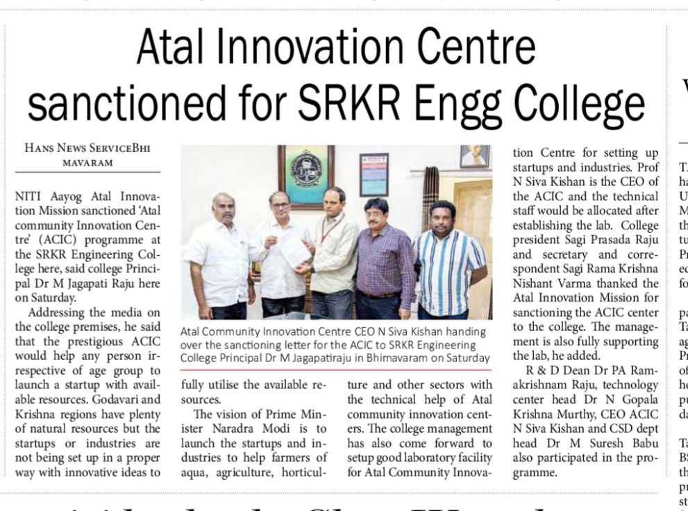 Atal Community Innovation Centre was sanctioned for SRKR Engg College through NITI Aayog and