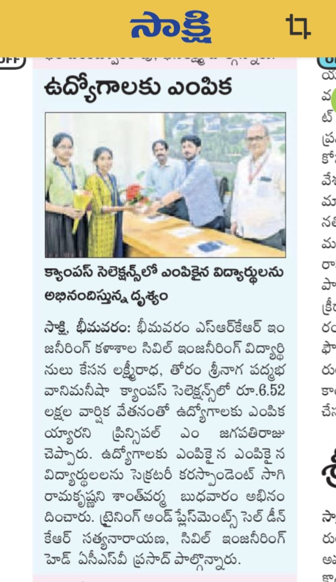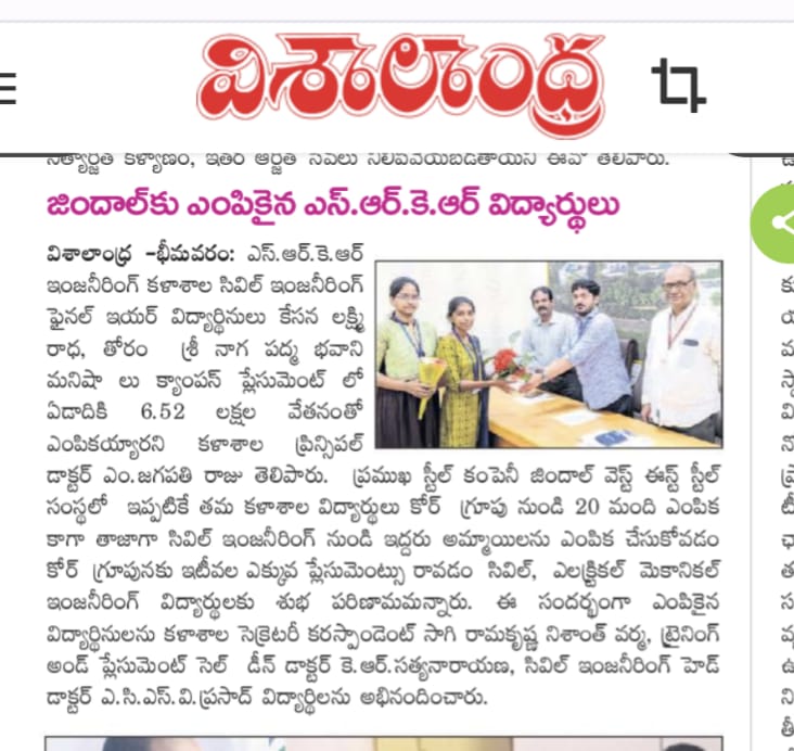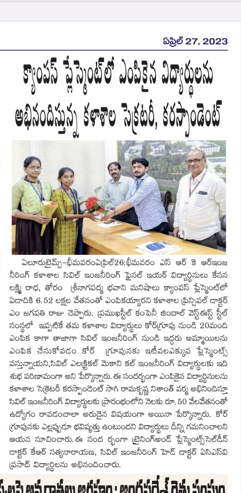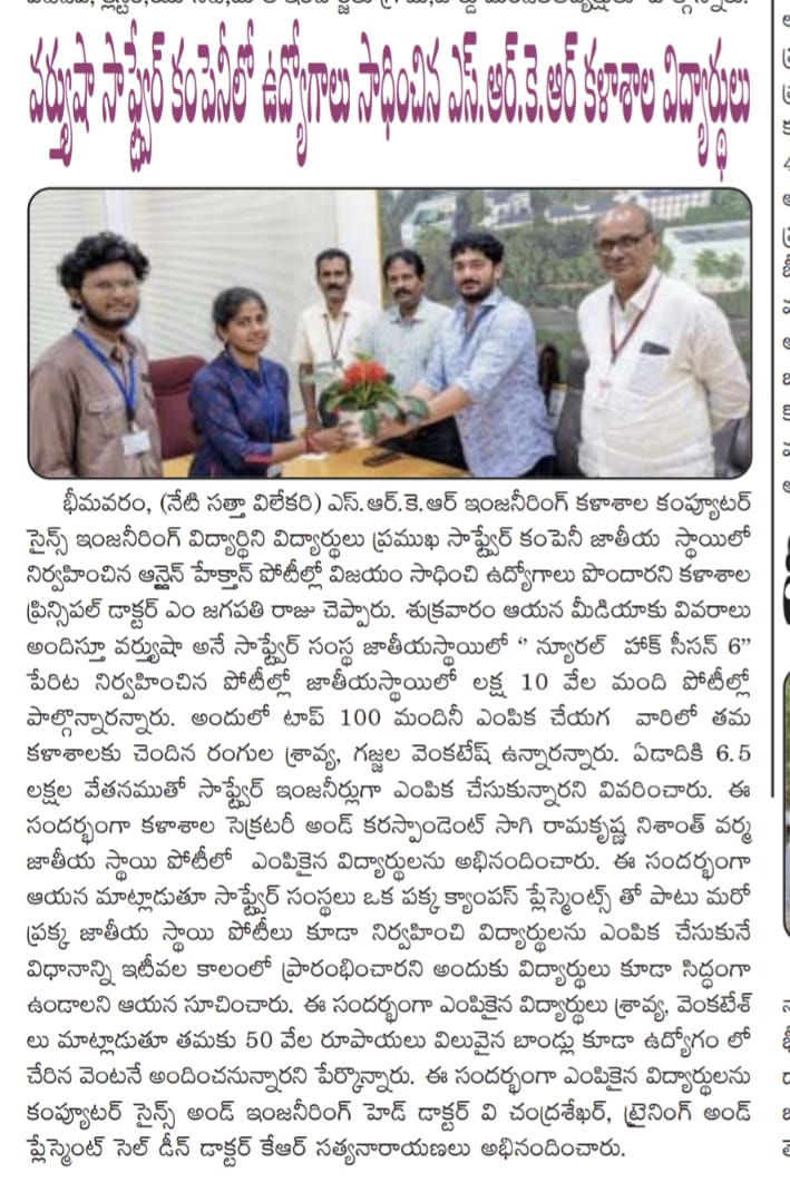 and Correspondent of SRKR Sri. Nishanth Varma. Speaking on this occasion Training and Placements