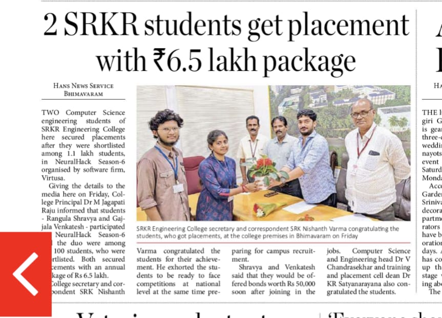students were felicitated in the campus by Secretary and Correspondent of SRKR Sri. SRK Nishanth