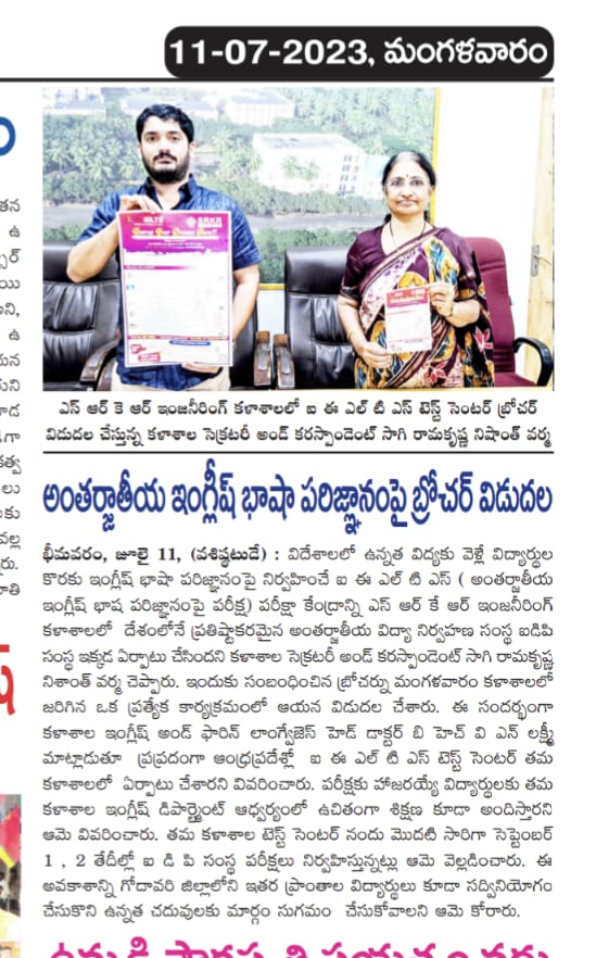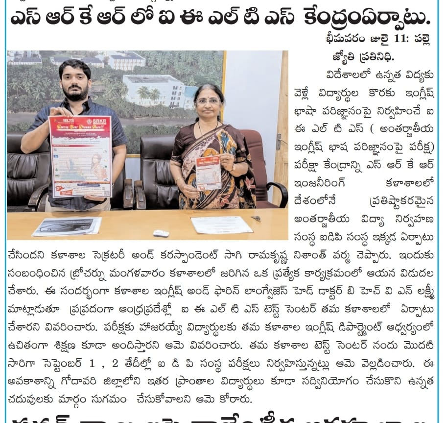 For the first time in the state of AP, SRKR had the privilege of setting up an IELTS Centre in