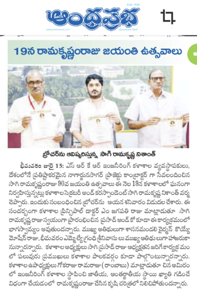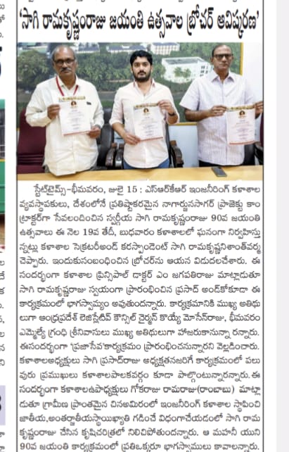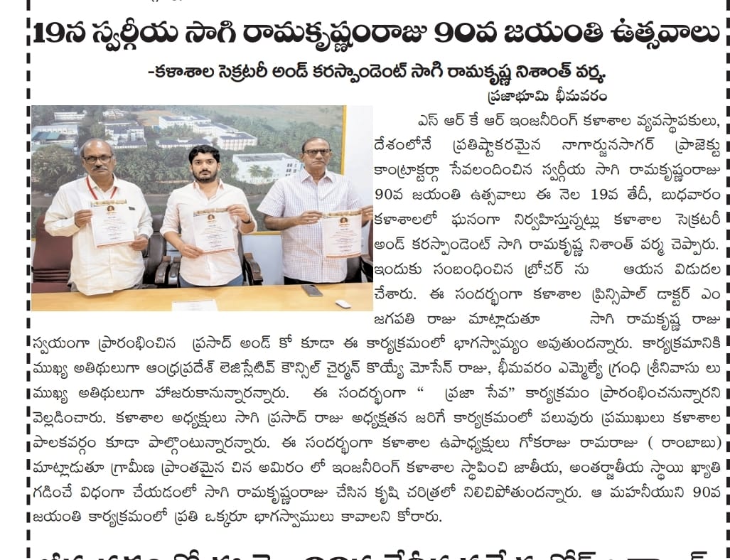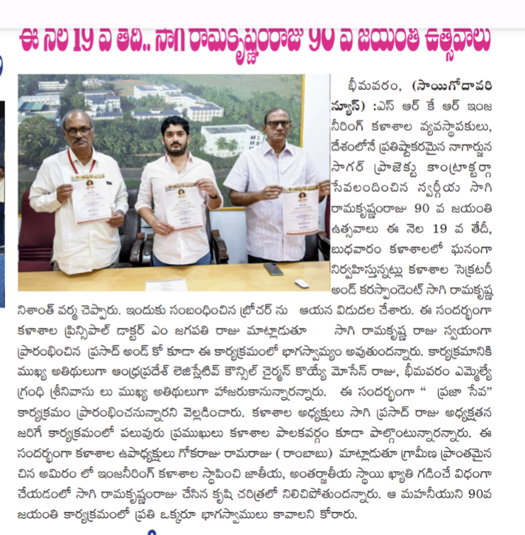 SRKR Engg College Founder Sri. Sagi Ramakrishna Raju 90 th Birthday Celebrations were held in a