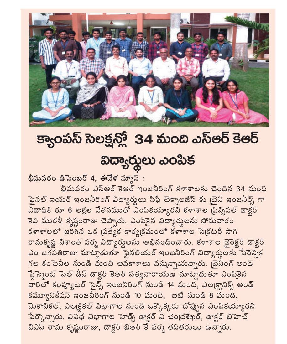 In a momentous achievement for our college, four outstanding final year students have been handpicked to serve as trainee engineers at Sifi Technologies, each receiving a generous annual salary of Rs. 6 lakh. This remarkable accomplishment was announced by Dr. KV Muralikrishnamraju, the esteemed principal of our institution.