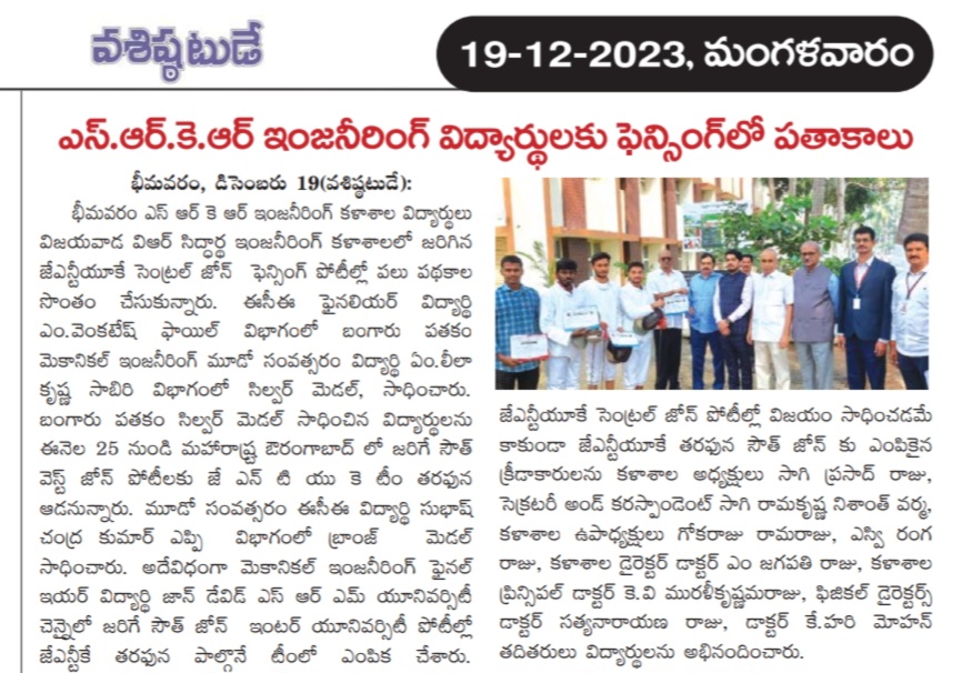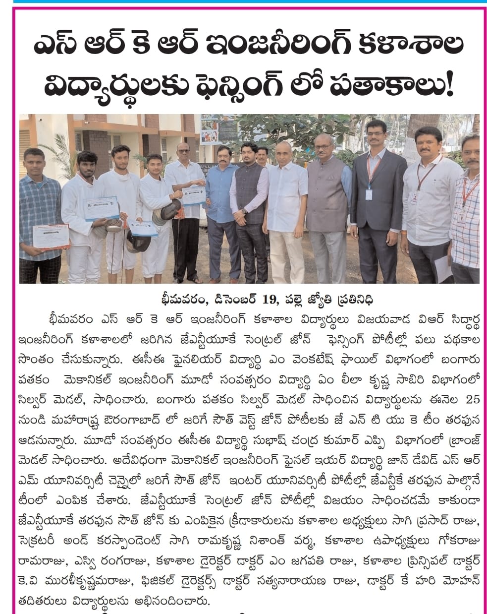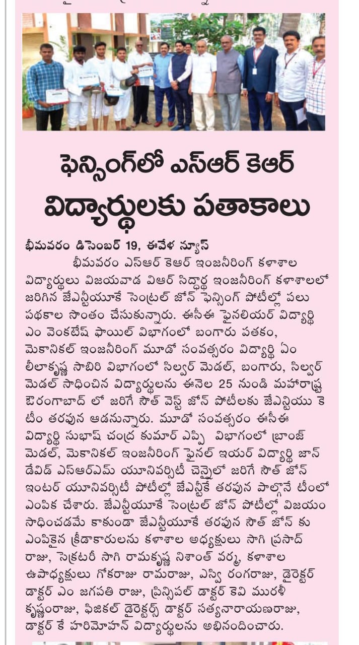 In a remarkable feat at the JNTUK Central Zone Fencing Competition held at VR Siddhartha Engineering College, Vijayawada, Our College students showcased their prowess, clinching top honors.