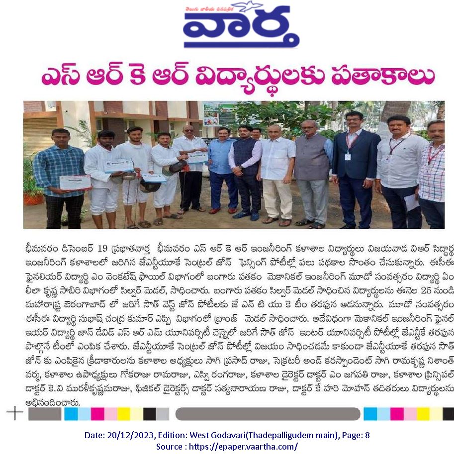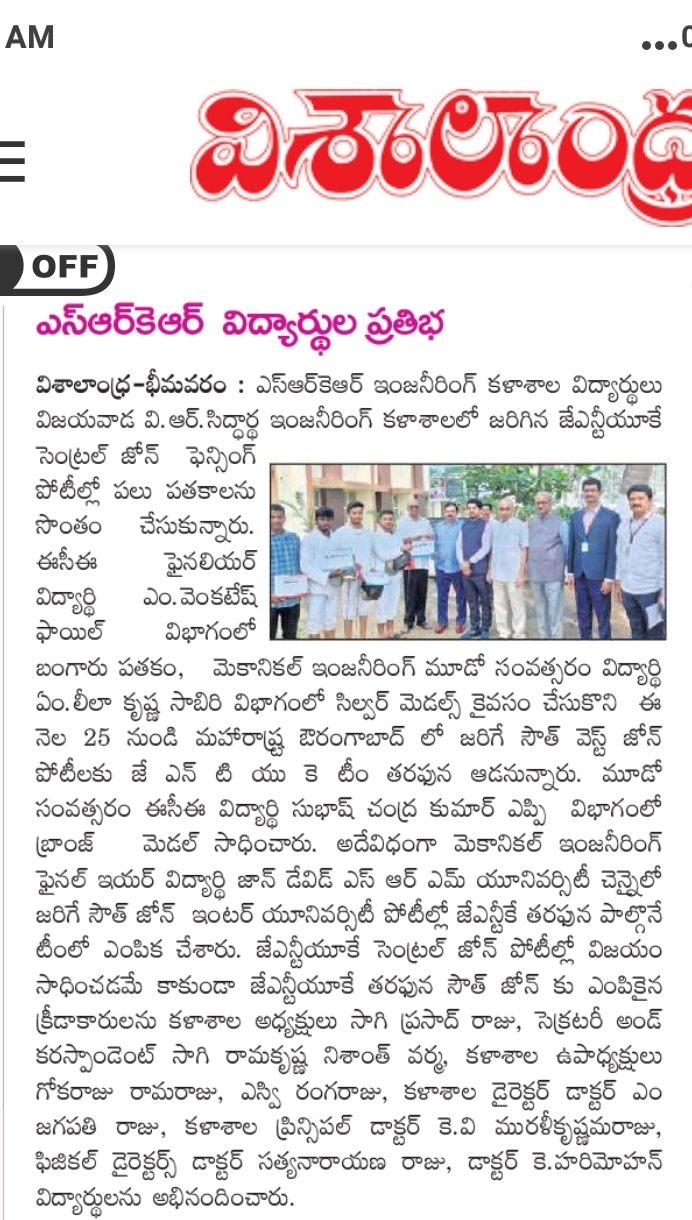 College President Sagi Prasad Raju garu, Secretary and Correspondent Sagi Ramakrishna Nishanth Varma garu, Vice Presidents Gokaraju Ramaraju and SV Rangaraju garu, College Director Dr. M Jagapathi Raju garu, College Principal Dr. KV Muralikrishnamaraju garu, and Physical Directors Dr. Satyanarayana Raju garu and Dr. K. Hari Mohan garu extend their heartfelt congratulations to these accomplished students.