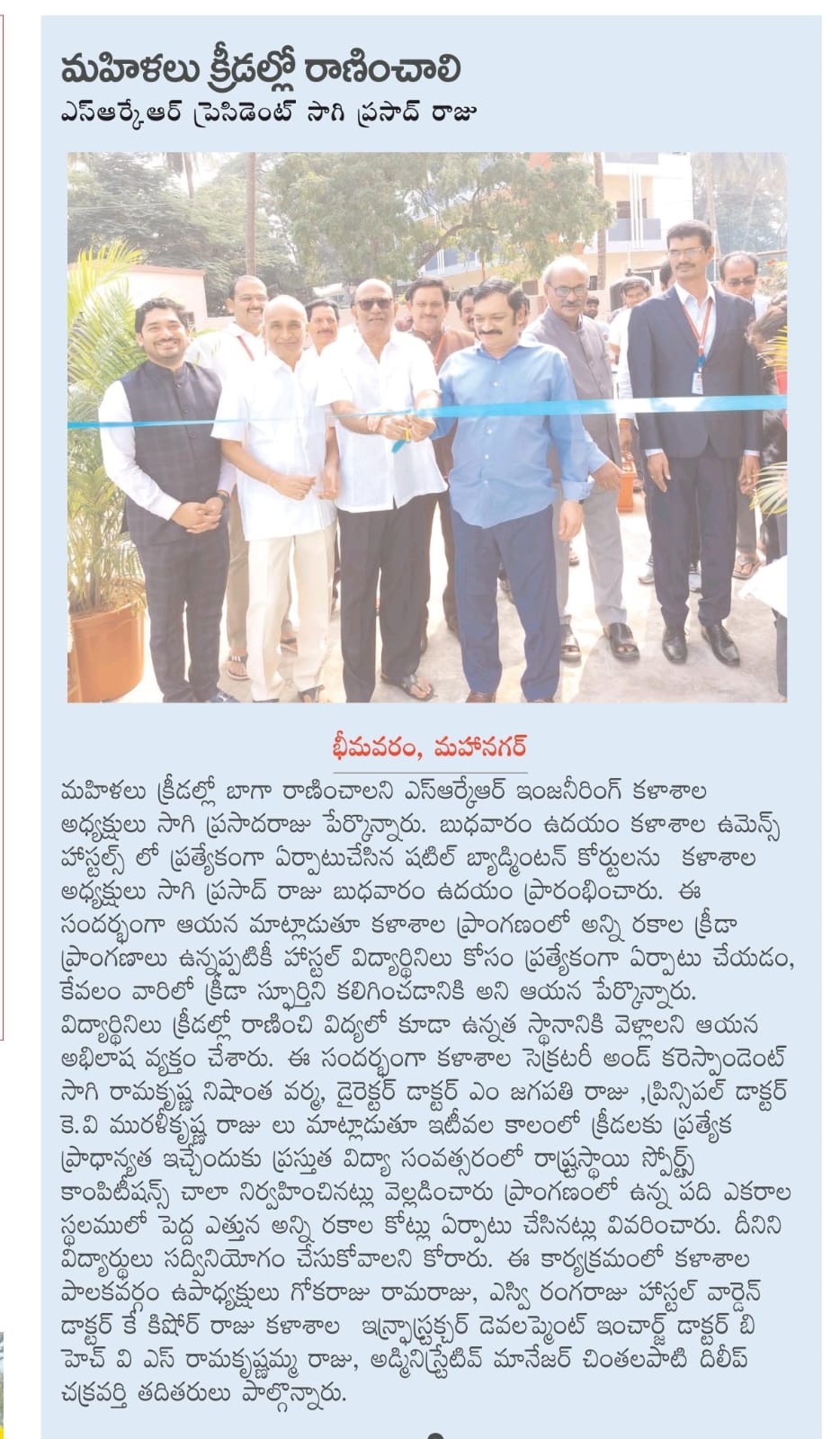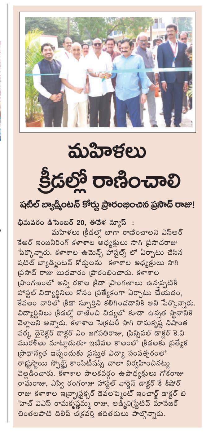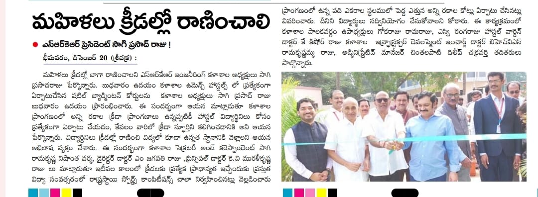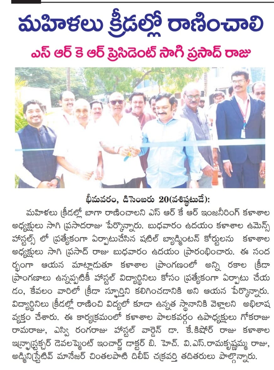 The President of college Sagi Prasadaraju garu, inaugurated newly set up shuttle badminton courts at the women's hostels on Wednesday morning. Expressing his commitment to fostering a strong sports culture, he emphasized the significance of providing dedicated facilities for female students.