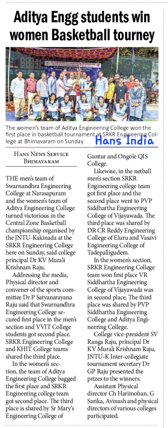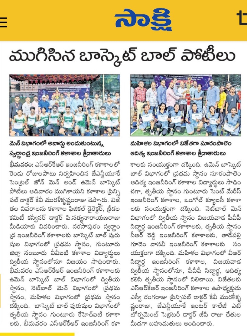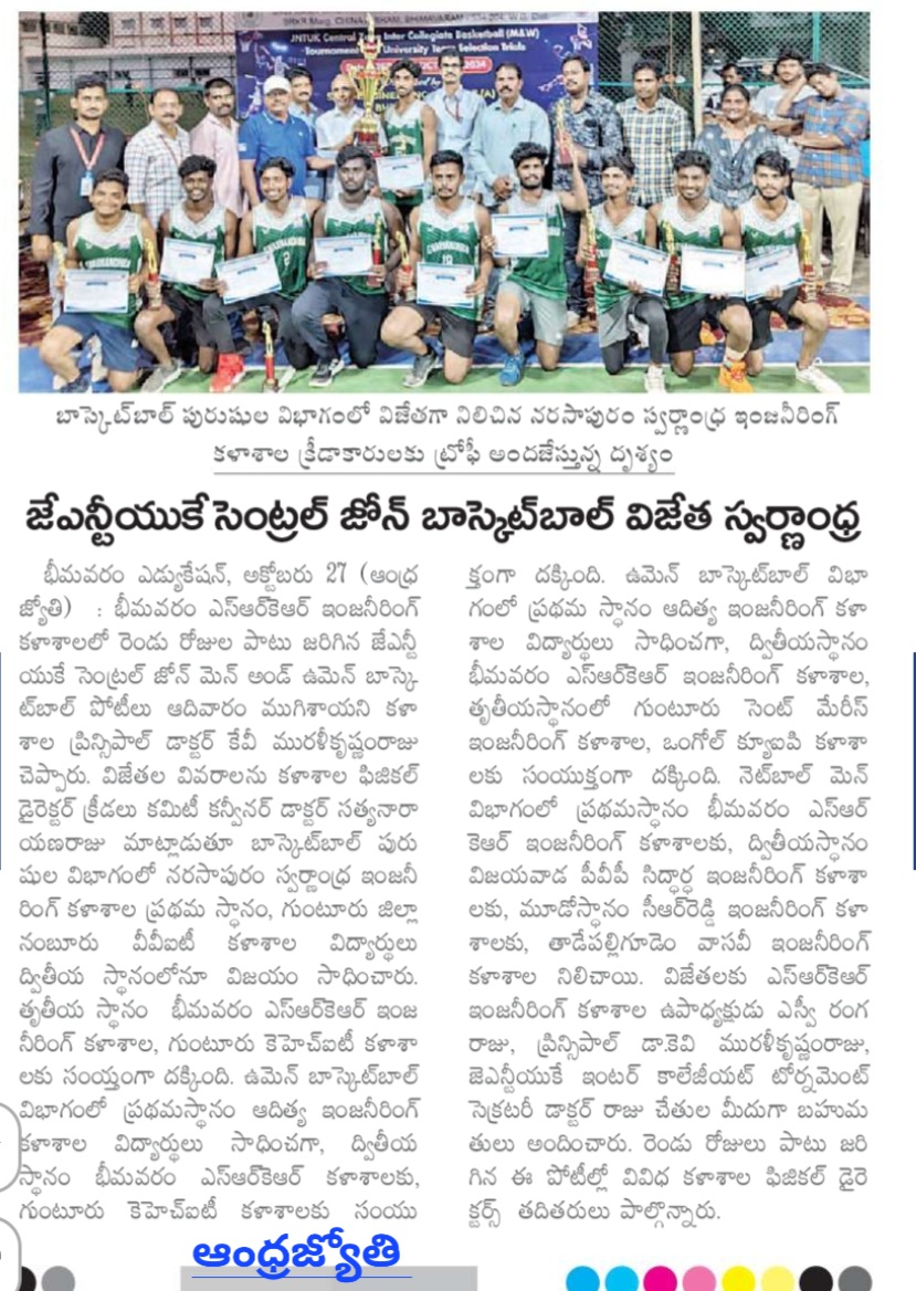 Bhimavaram Education, October 27 (Andhra Jyoti): The two-day JNTUK Central Zone Men's and Women's Basketball Tournament held at Bhimavaram SRKR Engineering College concluded with exciting results.