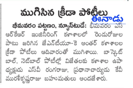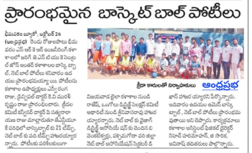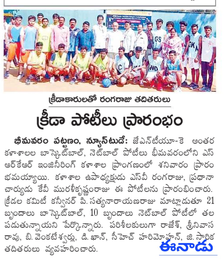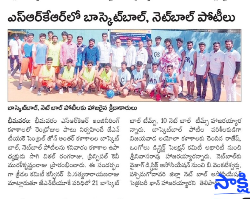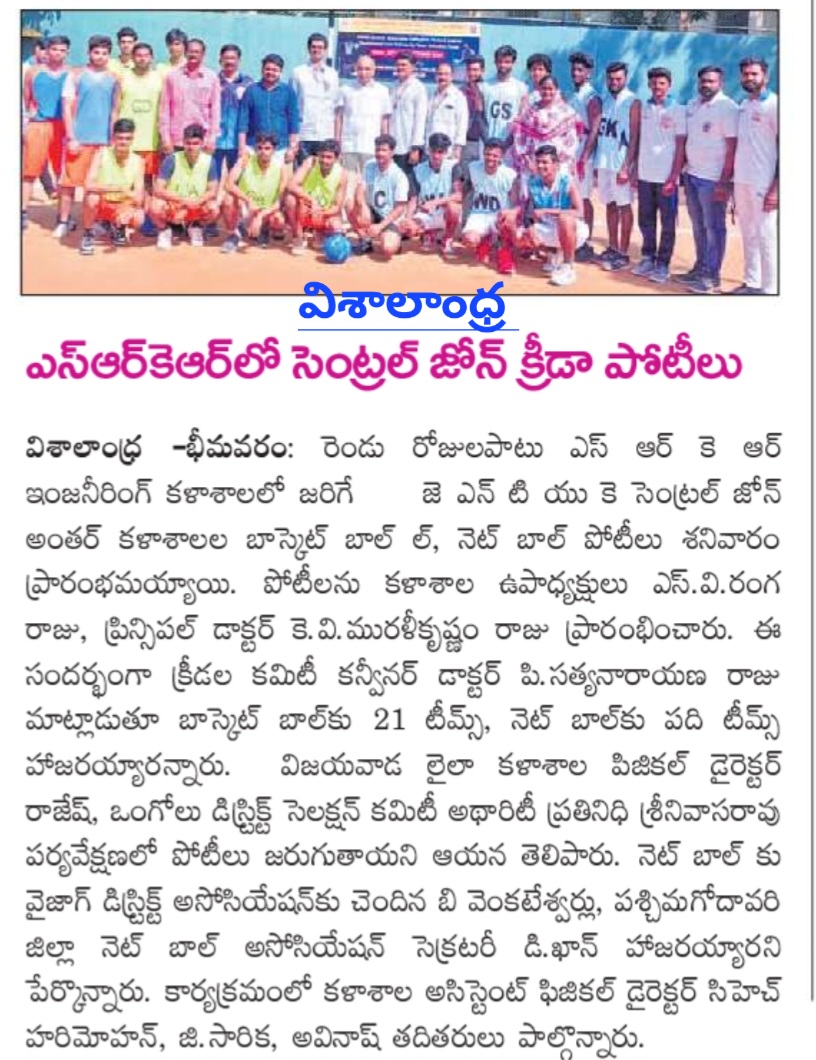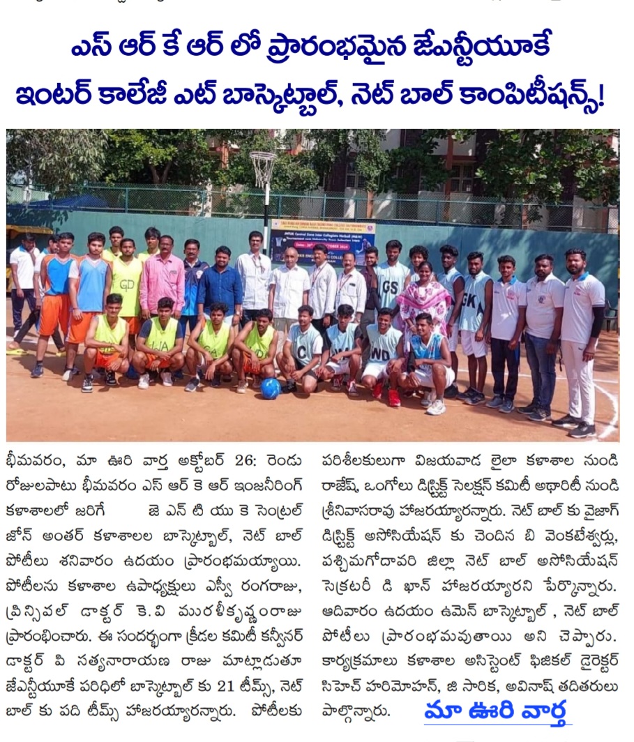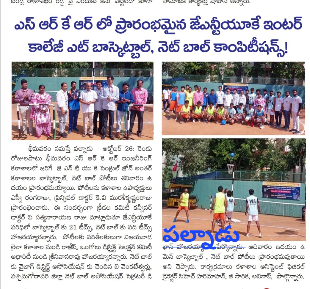 Bhimavaram Education, October (Andhra Jyoti): The JNTUK Central Zone Inter-College Basketball and Netball Competitions commenced on Saturday at SRKR Engineering College, Bhimavaram, and will run for two days. The competitions were inaugurated by Vice Chancellor SV Ranga Raju and Principal Dr. KV Muralikrishnam Raju.