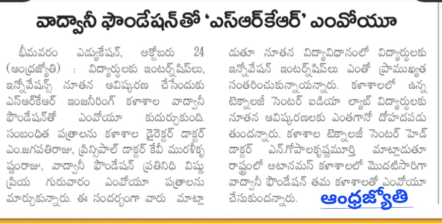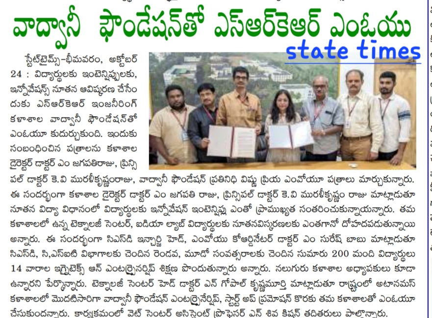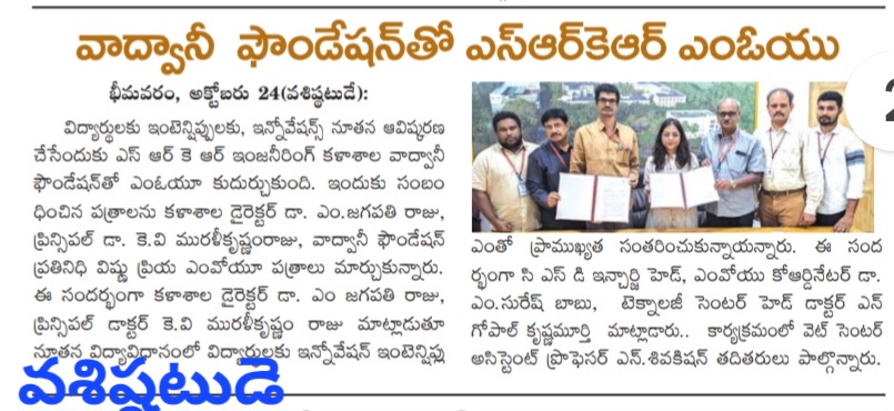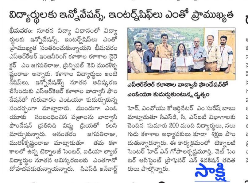 Bhimavaram: In a significant step towards enhancing educational outcomes, SRKR Engineering College has emphasized the importance of innovations and internships for students. During a recent event, College Director M. Jagapathi Raju and Principal Dr. KV Muralikrishnam Raju spoke about the crucial role these elements play in modern education.