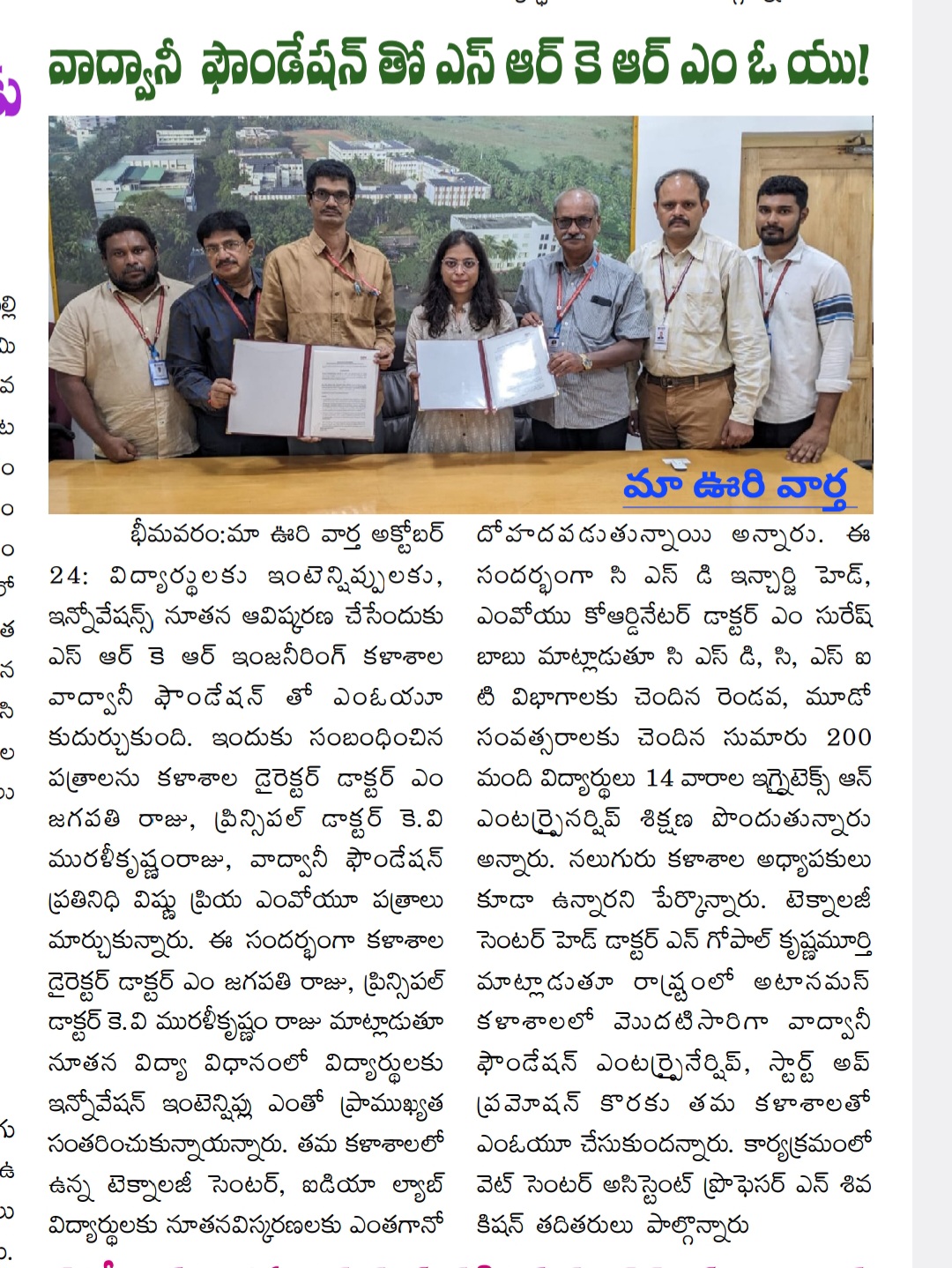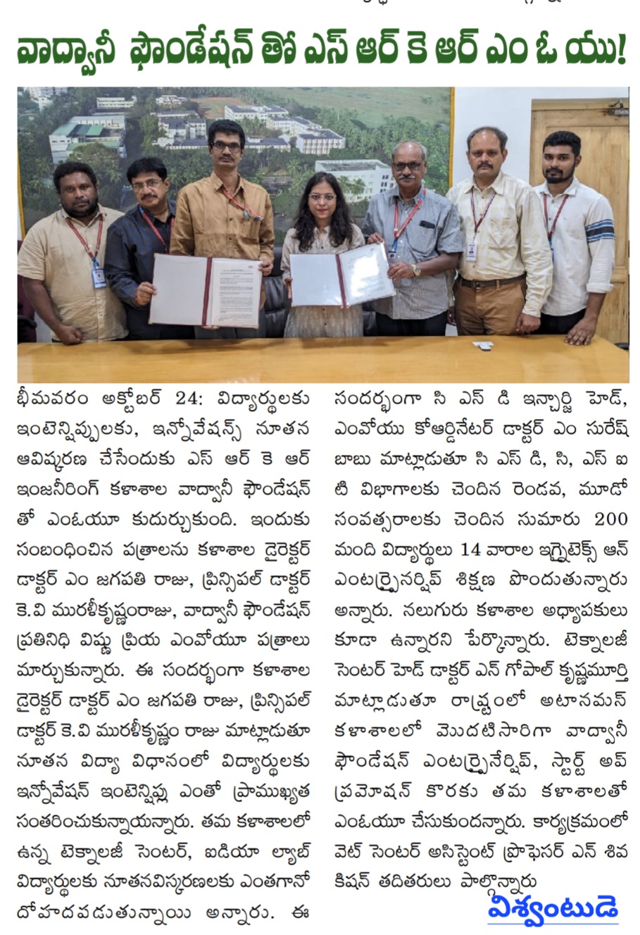 The occasion marked the signing of a Memorandum of Understanding (MoU) with the Wadwani Foundation, aimed at fostering new innovations. Vishnu Priya, a representative from the Wadwani Foundation, exchanged the MoU documents, solidifying the partnership.