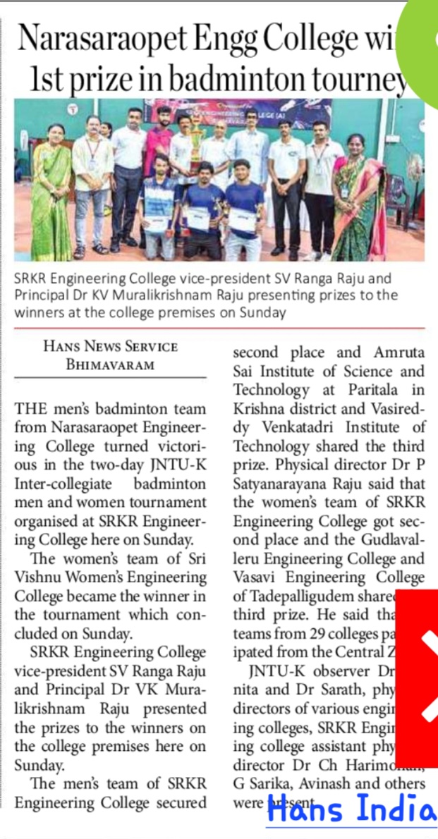 We wish all participants the best of luck and hope to see outstanding performances that reflect the talent of SRKR Engineering College athletes!