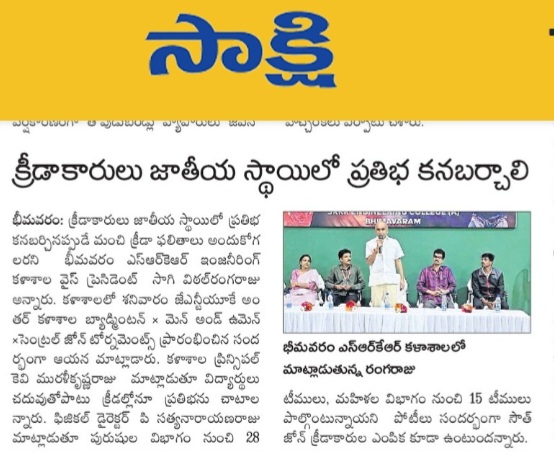Dr. Jagapathi Raju emphasized the college's commitment to prioritizing sports and encouraging student participation in athletic events. He also announced that following the badminton tournament, basketball and netball competitions for both men and women will be held on October 26th and 27th at the college sports premises.