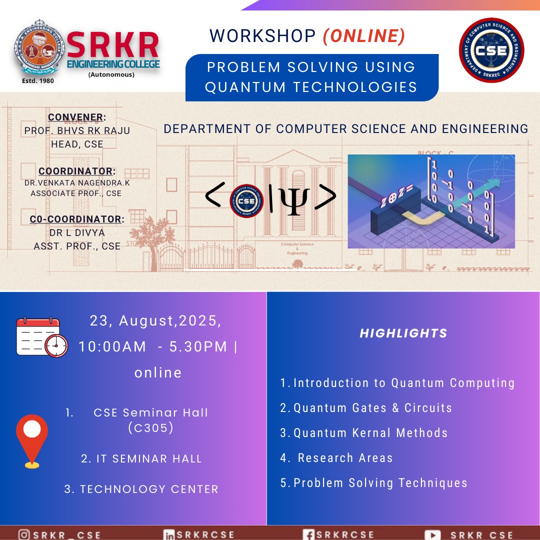 | 2 | Workshop on Problem Solving Using Quantum Technologies | 23-08-2025 | 175 | View Report | View Poster |