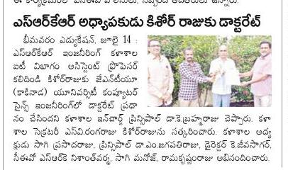 Secretary and correspondent Shri SV Ranga Raju garu, Director Shri Jeeva Sagar garu, Principal Dr. M. Jagapathi Raju, In-charge Principal Dr K. Brahmaraju garu, Dean (R&D) Dr.PARK Raju garu, IT HOD Dr. Bh.V.S.K. Raju, other HODs and Staff congratulated him for his achievement.