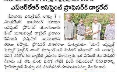 Secretary and correspondent Shri S.V. Ranga Raju garu, Principal Dr. M. Jagapathi Raju garu, ECE HOD Dr. B.V.S.S.N. Raju, other HODs and Staff congratulated him for his achievement.