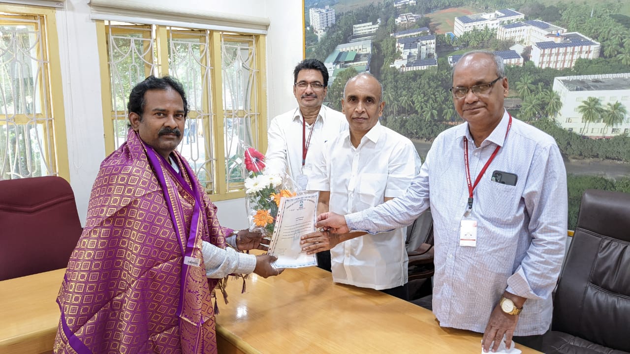 The Dean Placements of SRKR Engg College Mr. KR Satyanarayana had received the Doctorate from GITAM University in the stream of Mechanical Engineering. He had done his research on the topic of 'Fabrication and Characterization and Micro structural Studies of 6063 Alumini Alloy Nano Composites'. His research would be adding value to the sectors of Automobiles and Industry. The Secretary and Correspondent of SRKR Engineering College Sri. S. Vital Ranga Raju garu, Principal Dr. M. Jagapathi Raju garu, HOD of Mechanical Dept Dr. Brahma Raju garu and other faculty members felicitated Dr. Satyanarayana and wished him all the best for his future endeavors.