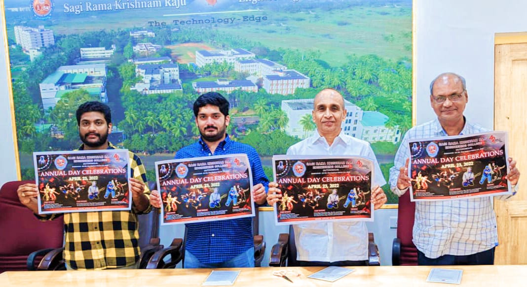 SRKR Engineering College is going to celebrate its 42nd Annual Day on 23rd April, 2022. The poster relating to this was inaugurated in the campus by Secretary and Correspondent Sri. SV Ranga Raju garu, CEO Sri. SRK Nishanth Varma garu and Principal Dr. M. Jagapathi Raju garu. Speaking on this occasion CEO and Secretary had said that this function would be commencing at 9:30AM on 23rd April, 2022 and the Guests for this function were Dr. GV Prasada Raju, Vice Chancellor of JNTU, Kakinada and Dr. KV Lakshmipathi Raju, Principal of MVGR College of Engineering, Vijayanagaram who were the prominent alumni of the SRKR Engg College. They said that it was a matter of great pride that the distinguished alumni of the college are attending the annual day function as the guests. Prizes for the students who have excelled in academics and sports would be given on this occasion.