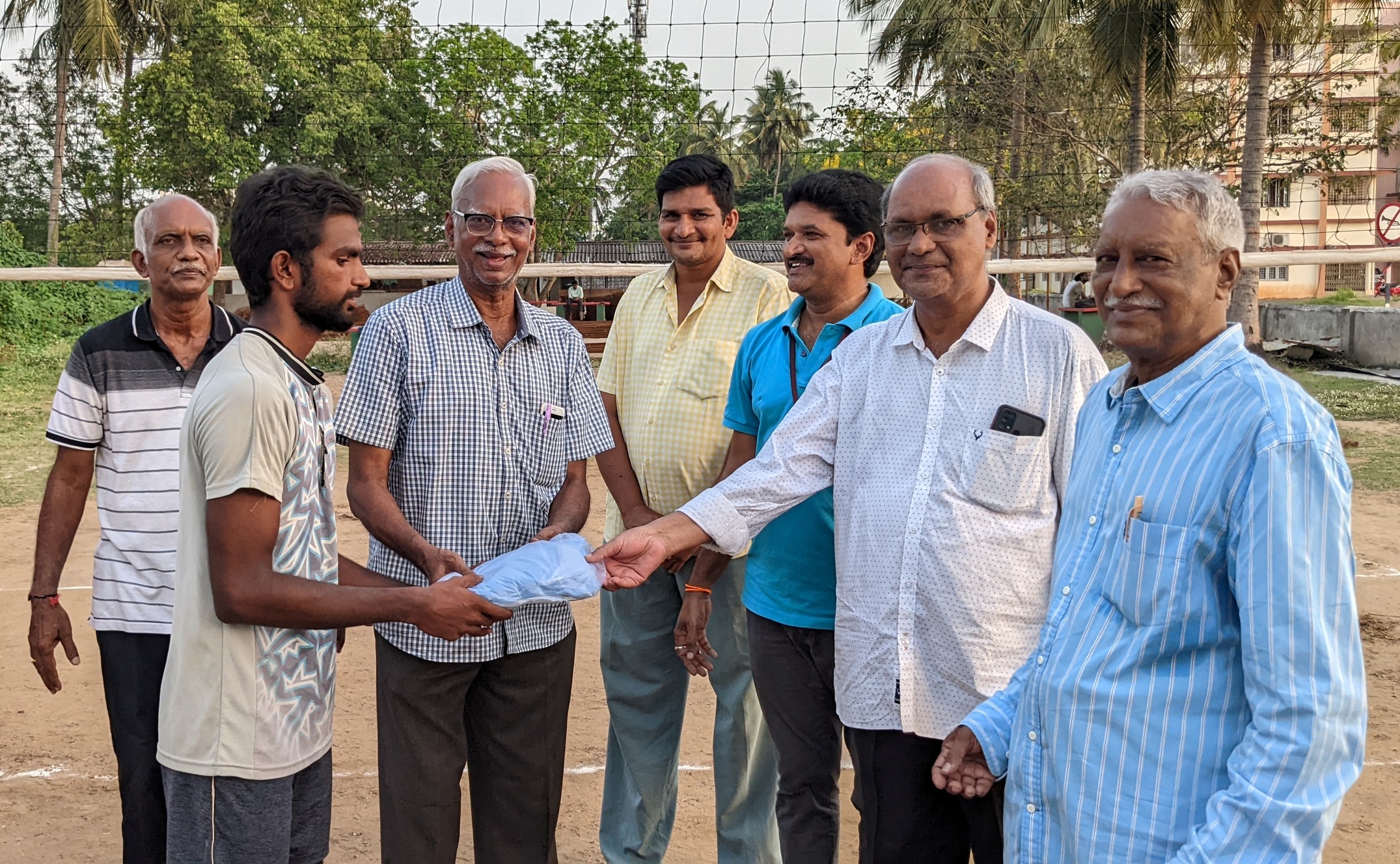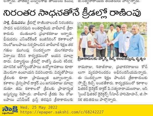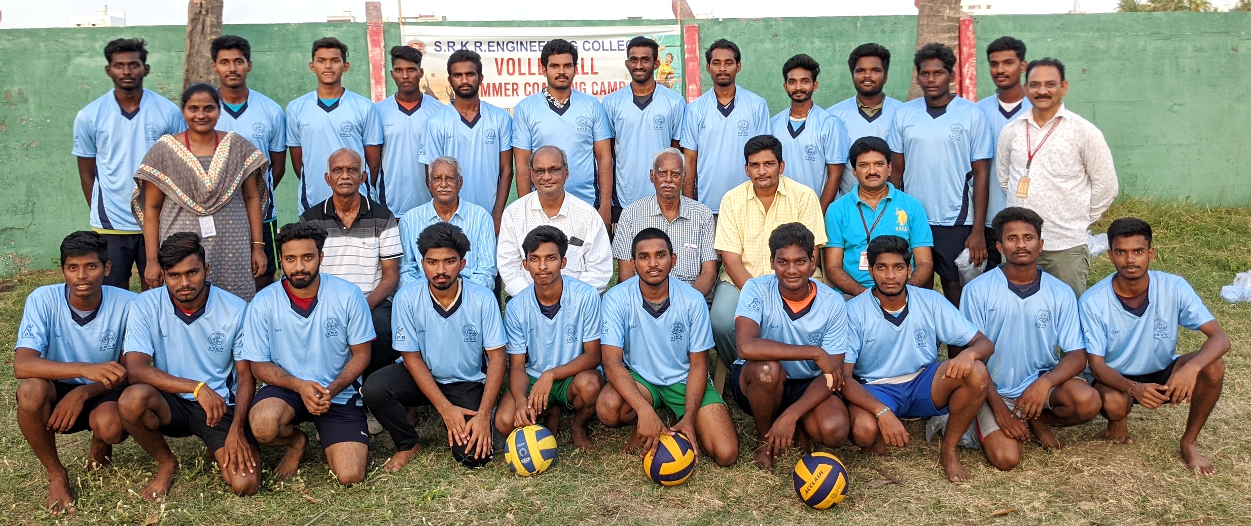 The volleyball coaching camp at SRKR which is being conducted for the last one month has ended on 24th May, 2022. Speaking on this occasion former national volleyball player and trainer Dantuluri Prabhakar Raju had said that students will excel in the field of sports only through continuous commitment and hard work. Former National Volleyball Player Shivaji Raju had said that studies can land in good jobs at state and central level by excelling in the field of sports and students should give importance to sports too along with academics. Principal of SRKR Dr. M. Jagapathi Raju had said that the college management is willing to support the students in the area of sports and that is the reason for many SRKR students being placed in University team for many national events. Sports kits were being handed over to students who took part in this camp. Physical Director of SRKR Dr. P. Satyanarayana Raju had presided over this meeting. Assistant Physical Directors Dr. Harimohan and G. Sarika also took part in this meeting.